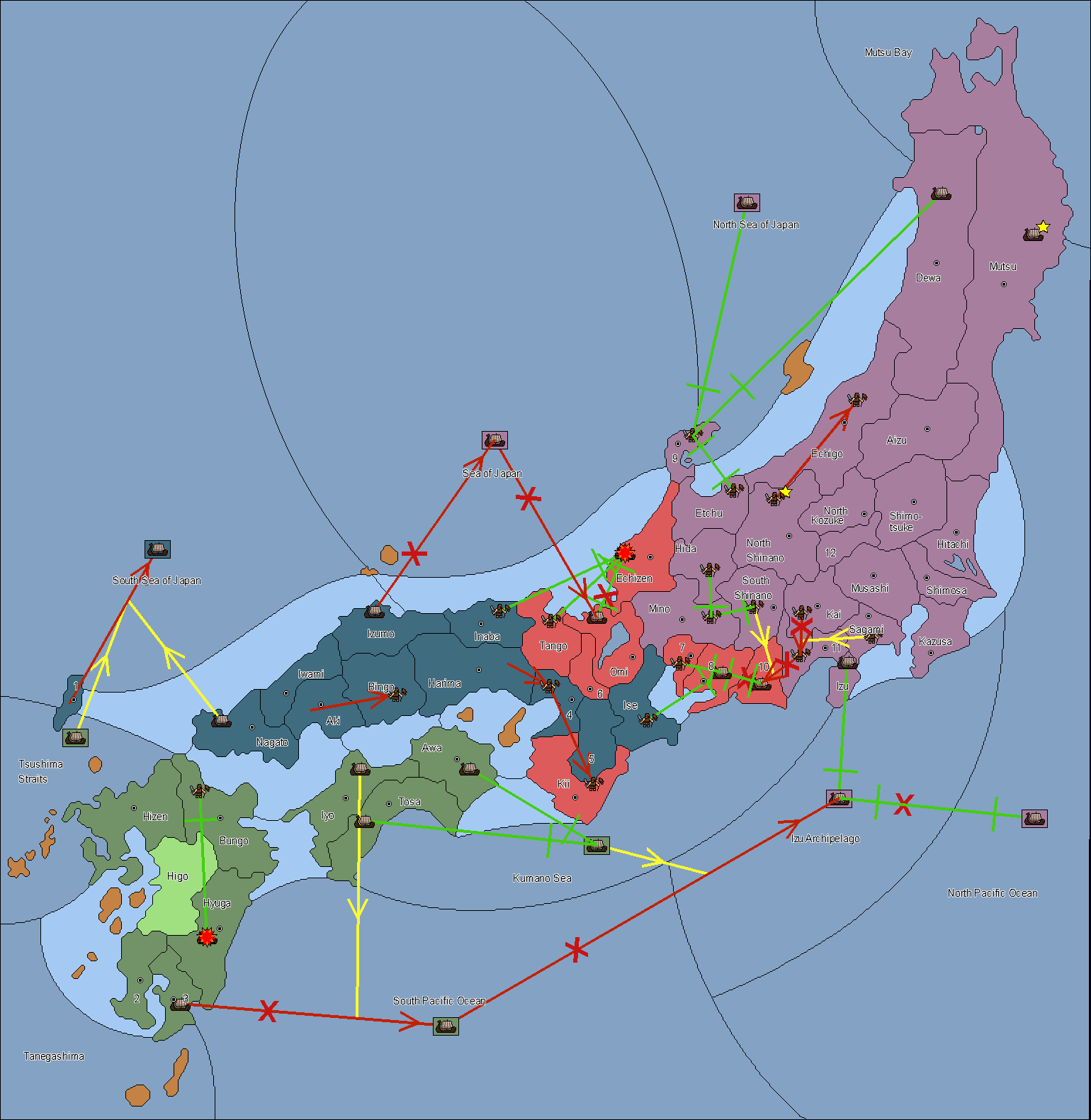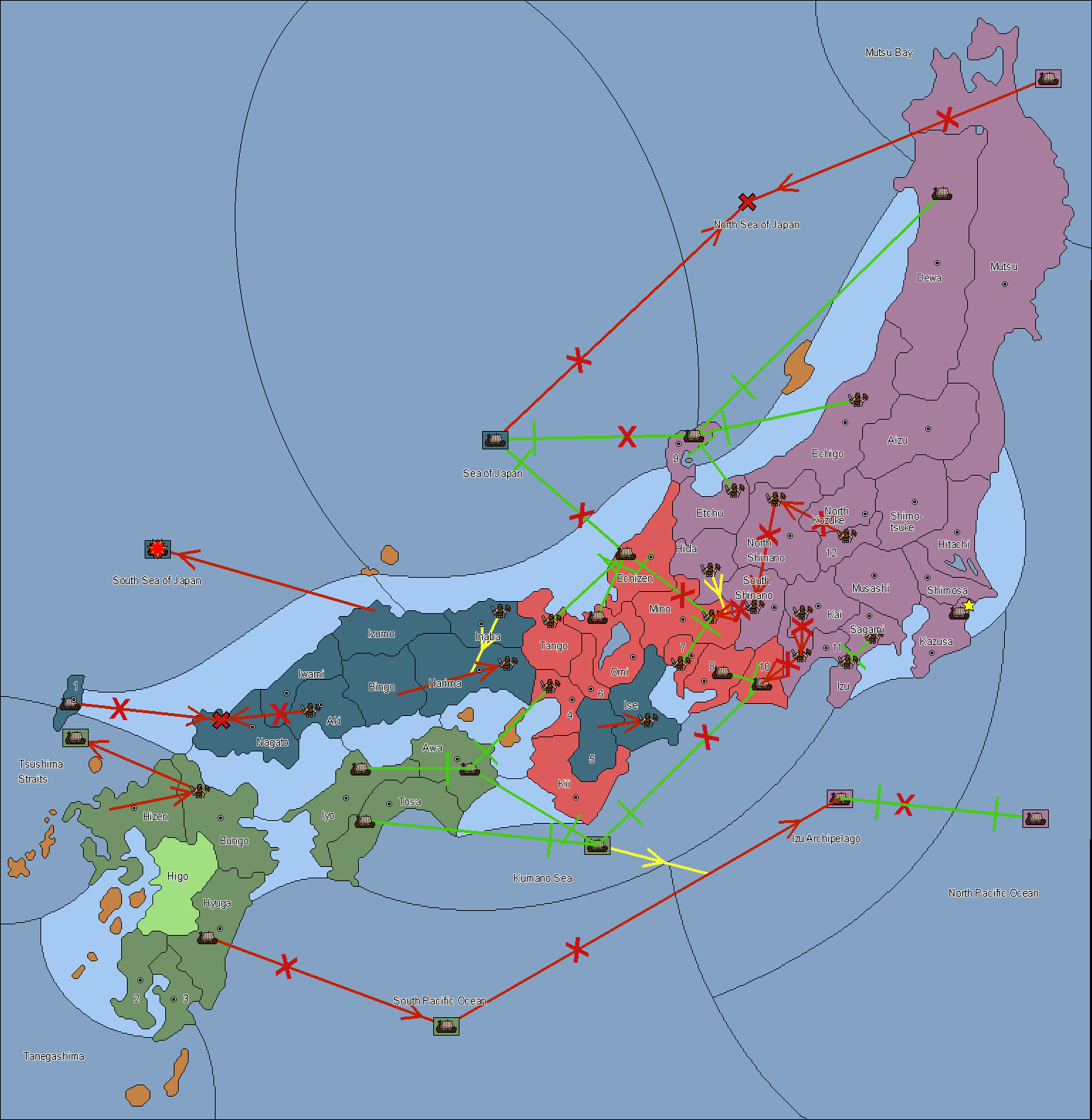 The fleet at Tsushima (1) support move to Bungo from Iyo.