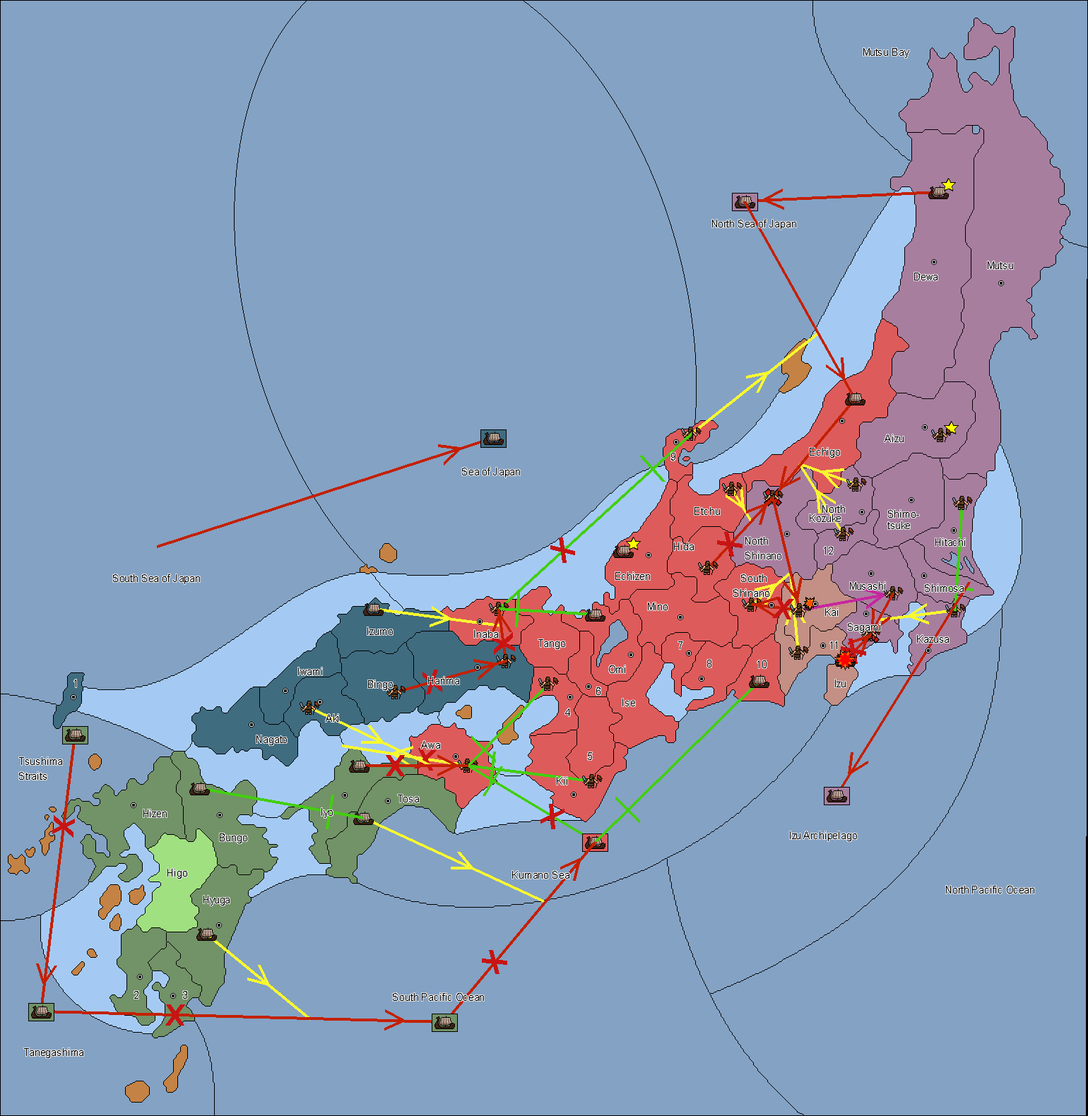 The fleet at Izu support move to Suruga (11) from Sagami.