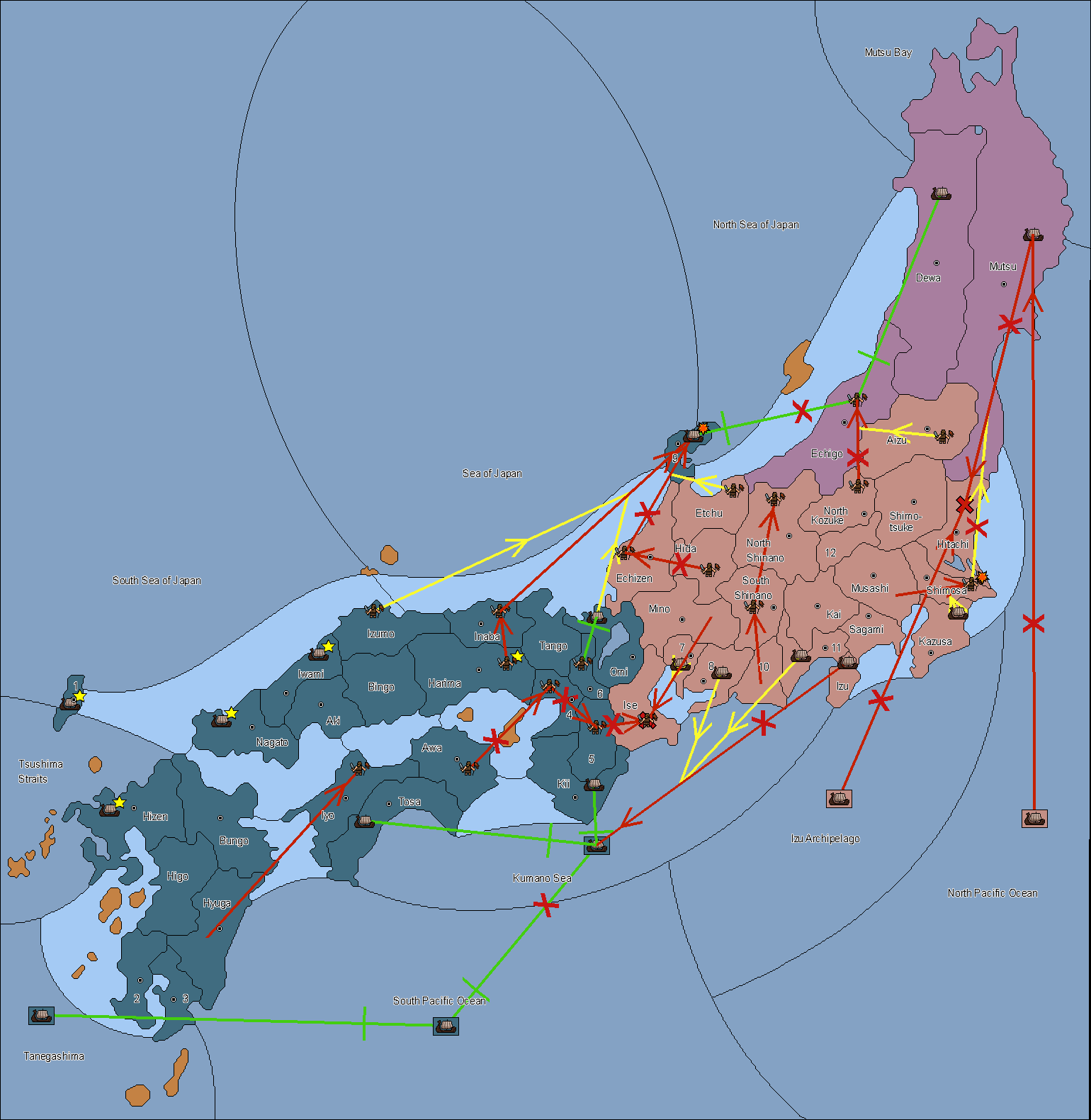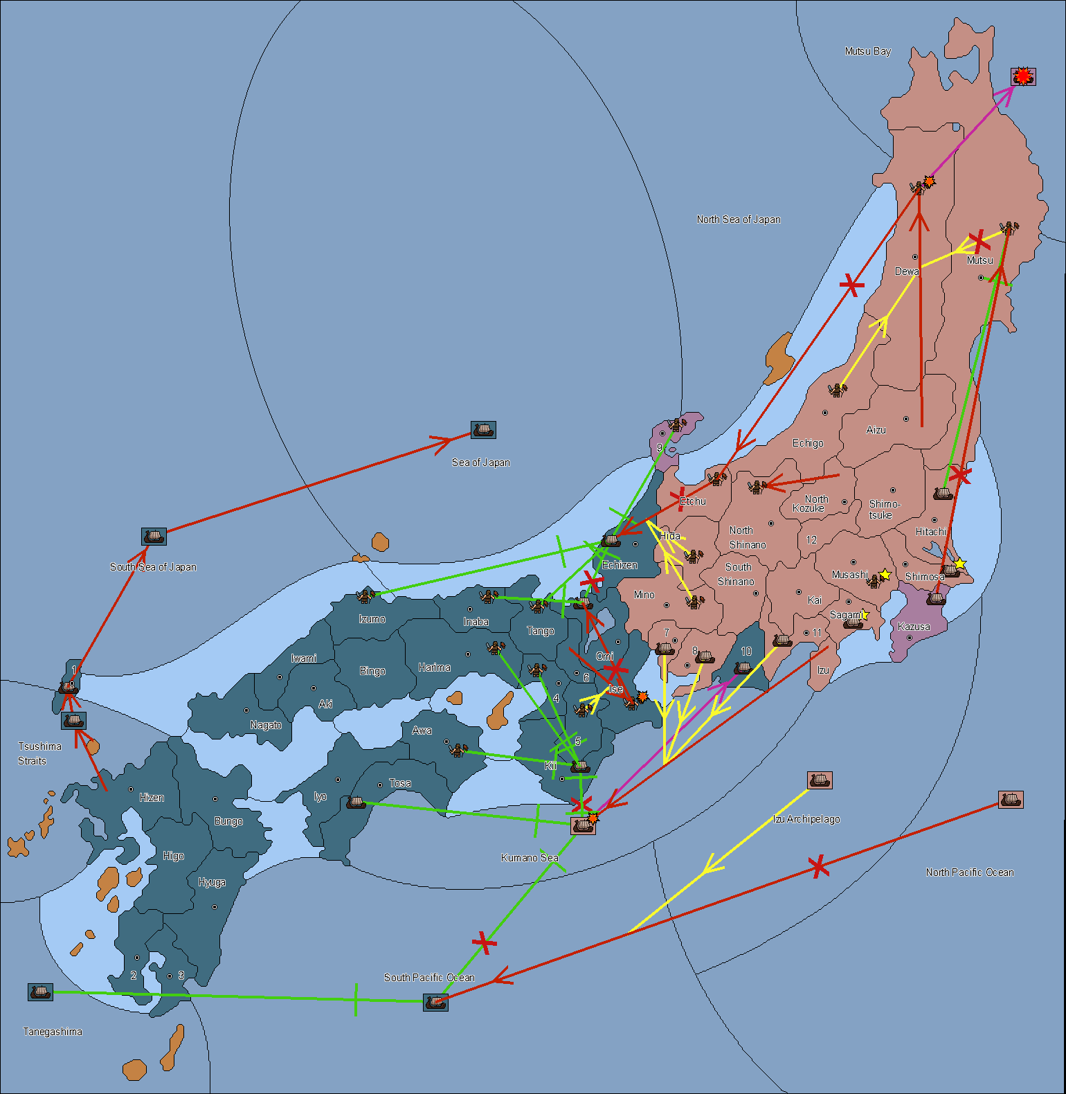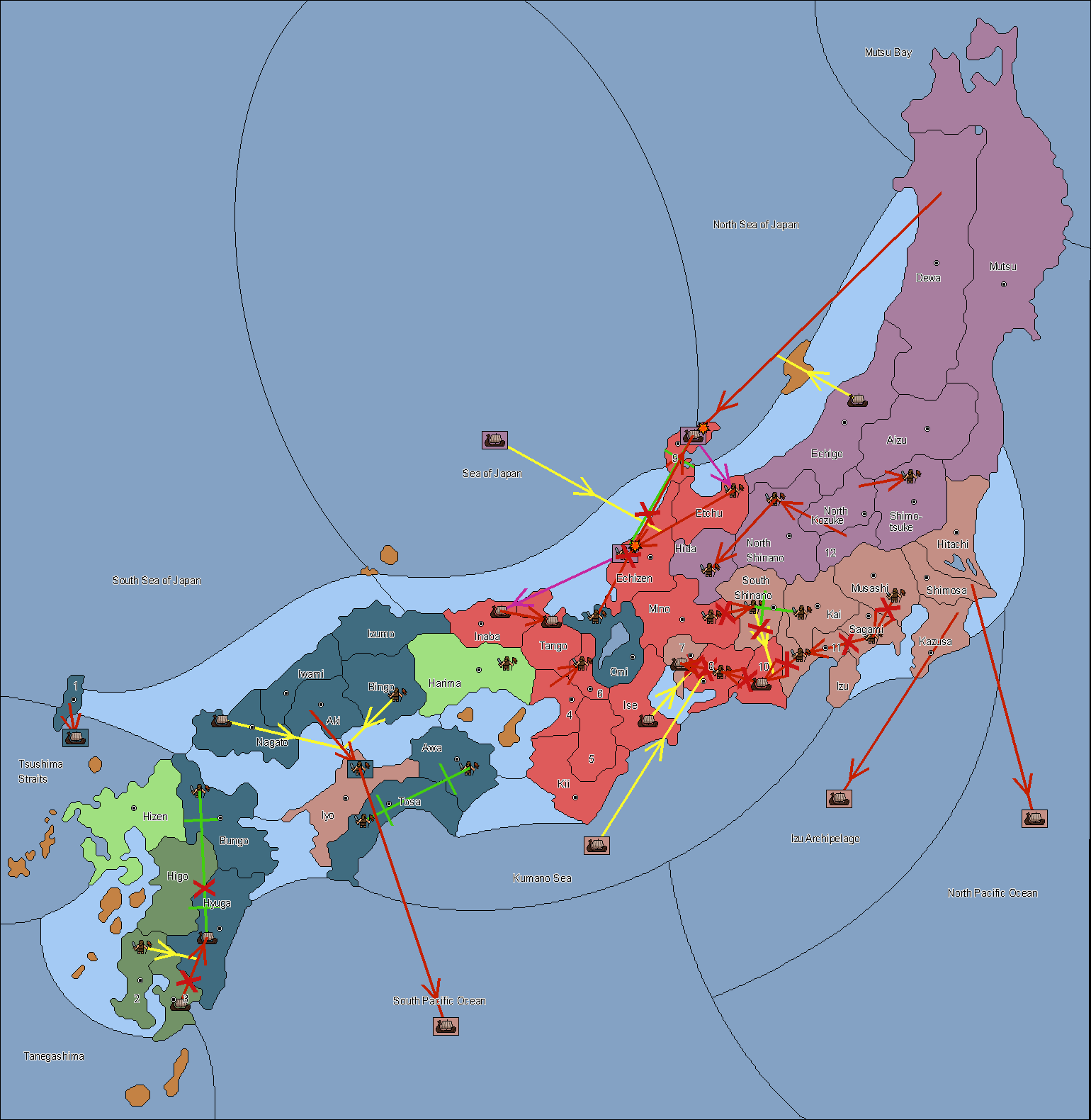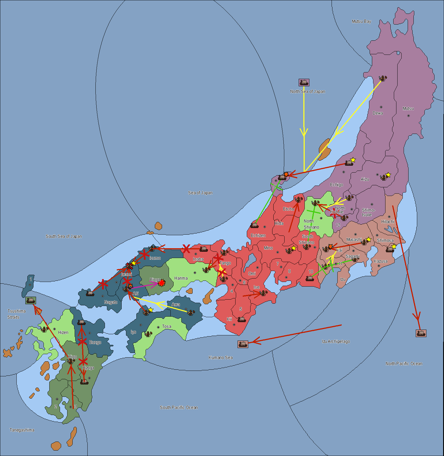 The fleet at Noto (9) support move to Etchu from Dewa.