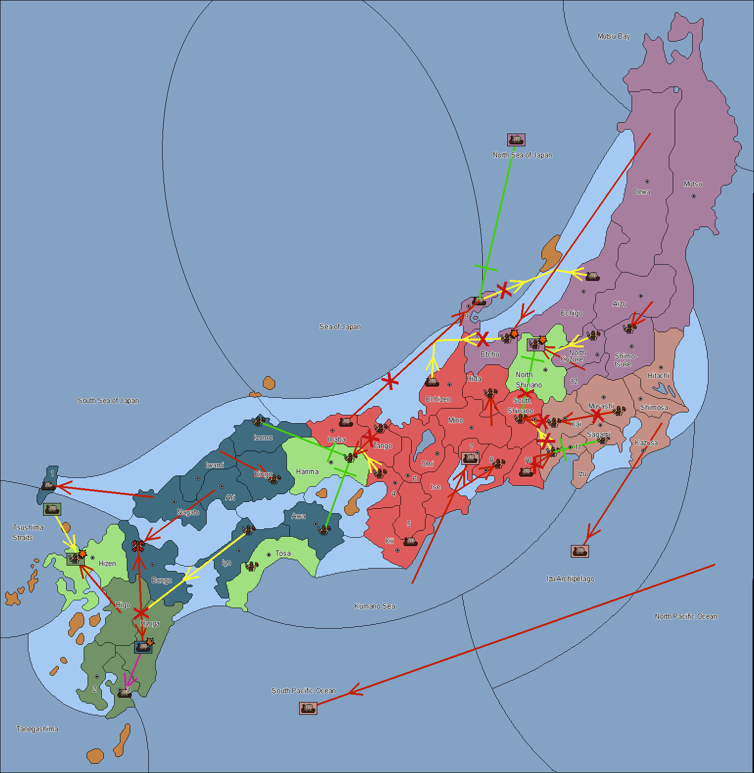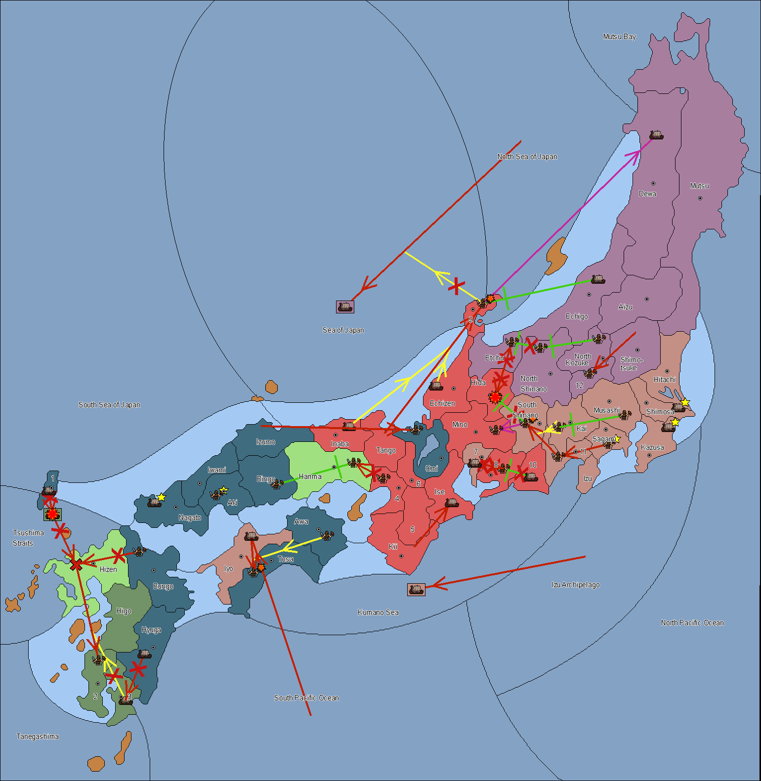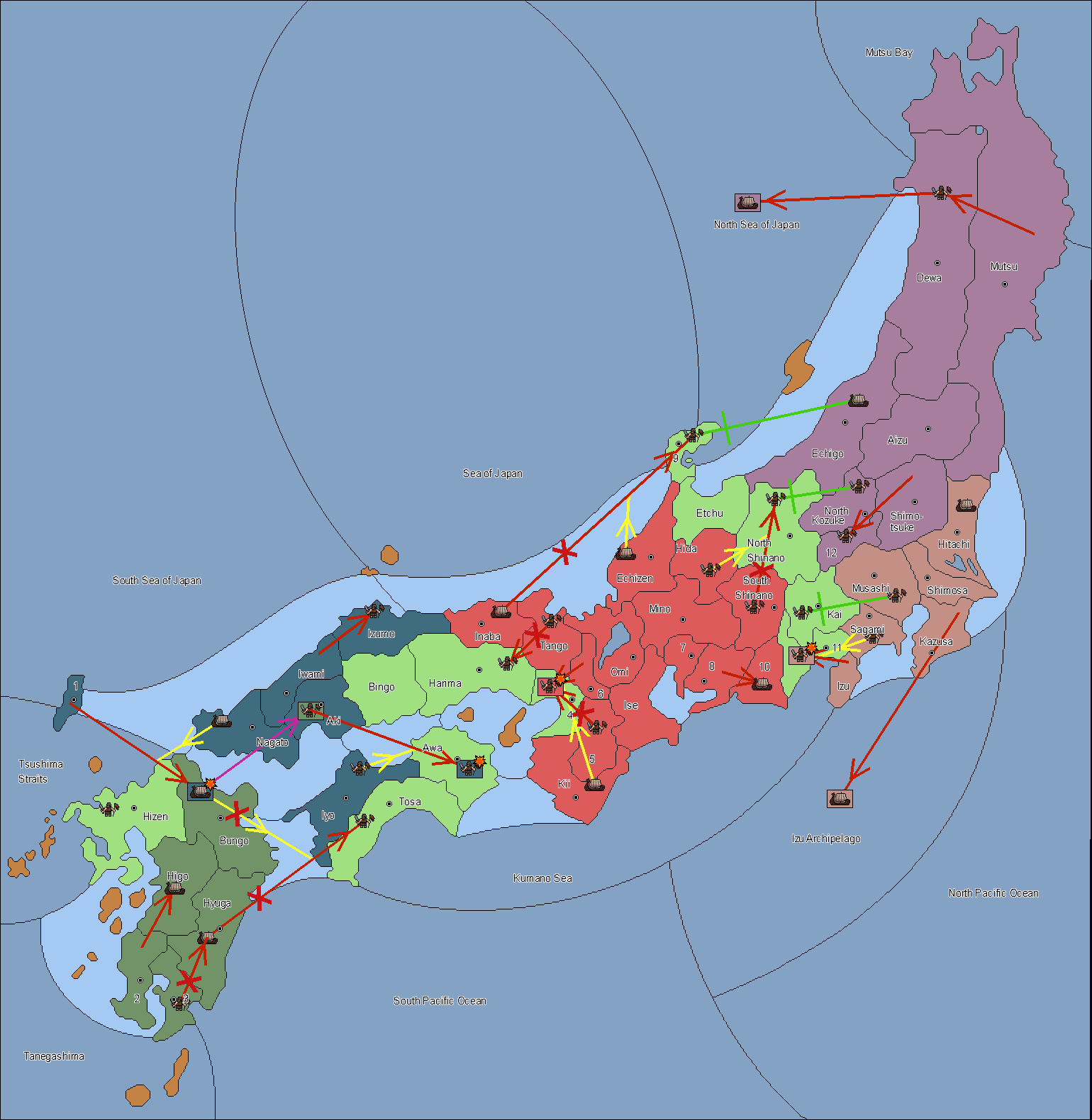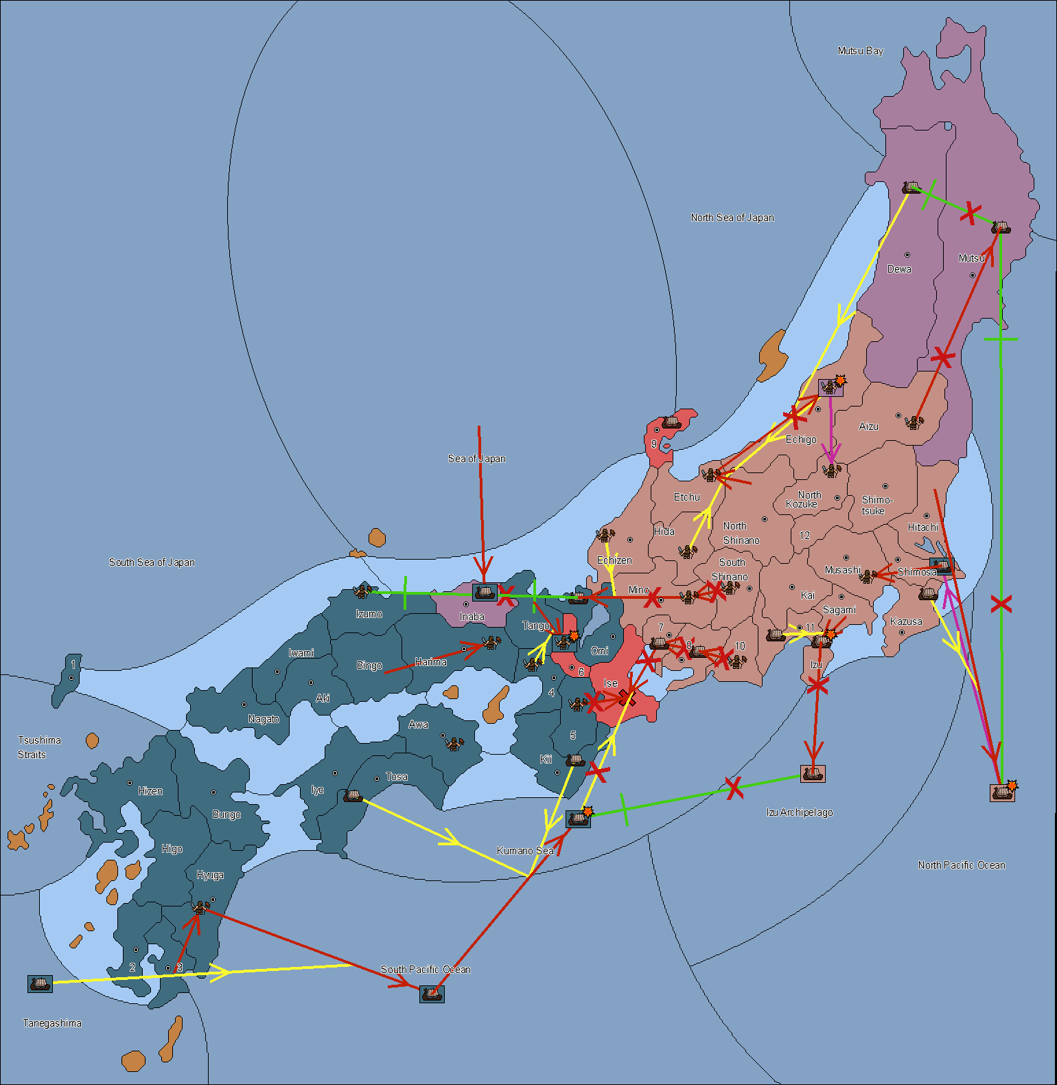 The fleet at Noto (9) support move to Etchu from Dewa.