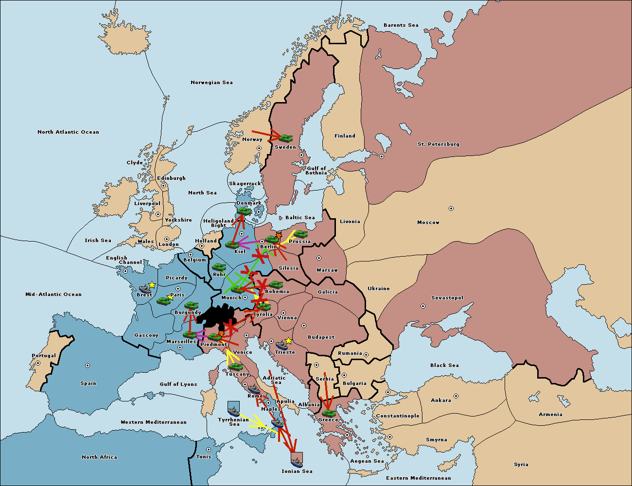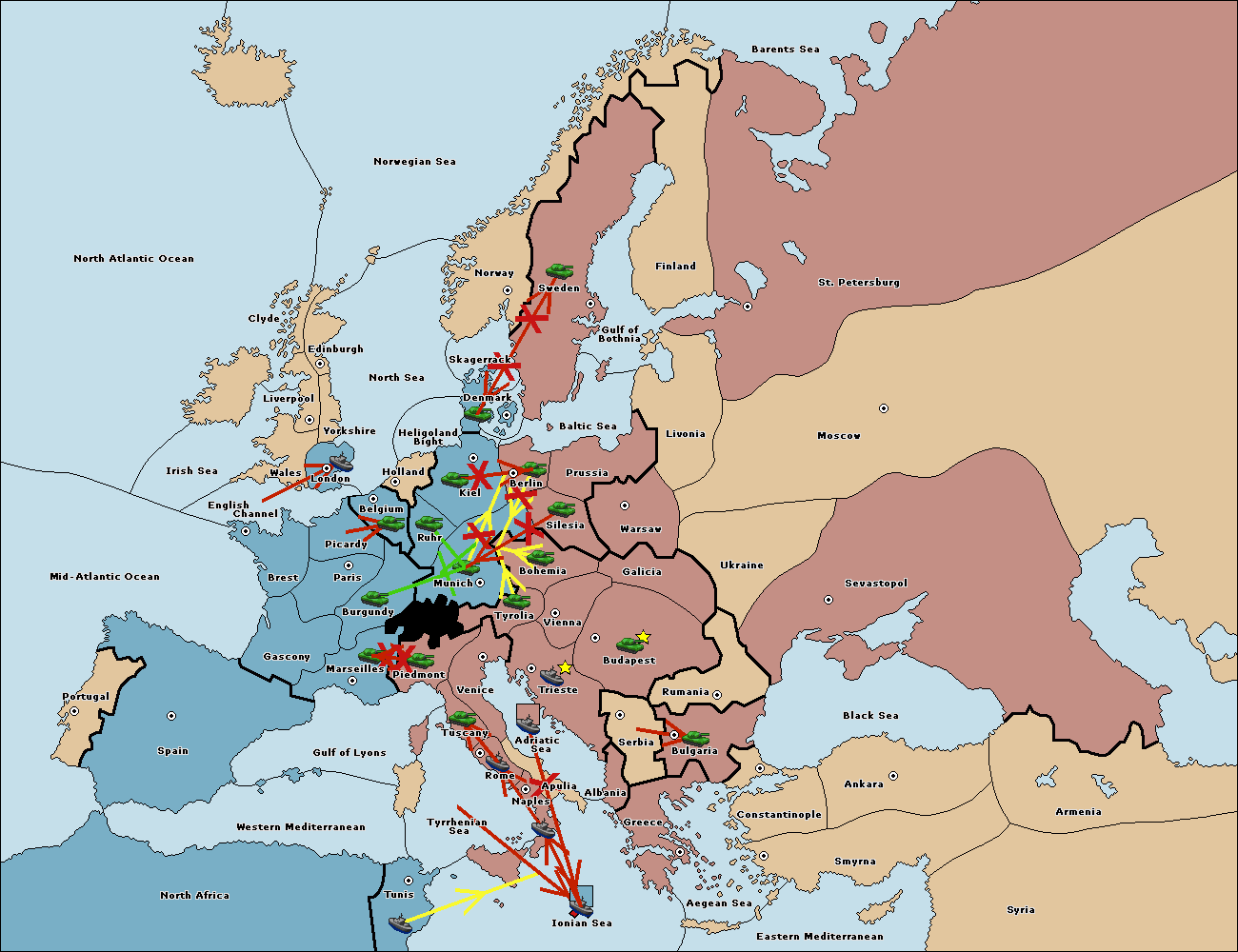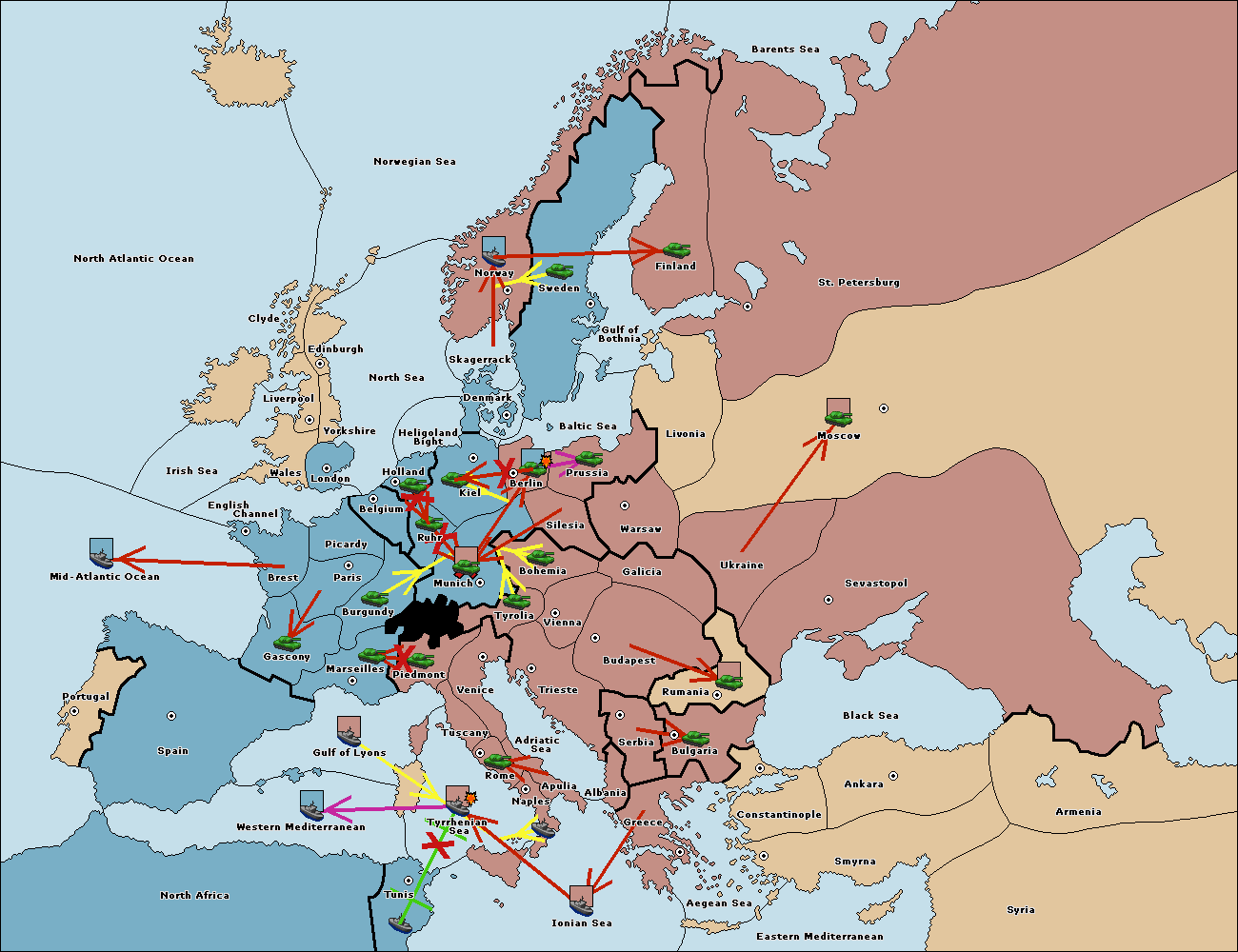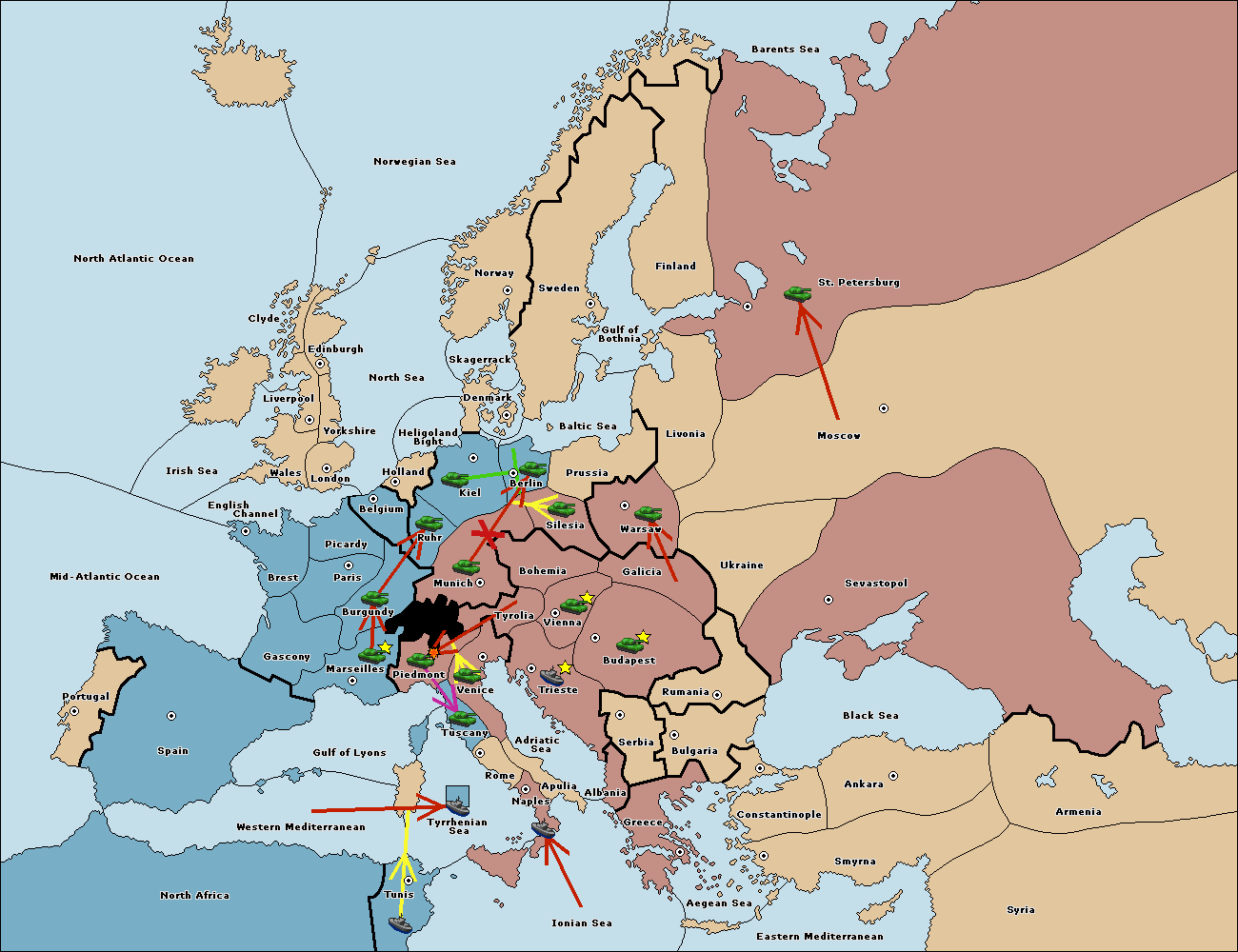 The fleet at Tyrrhenian Sea support move to Naples from Ionian Sea.
