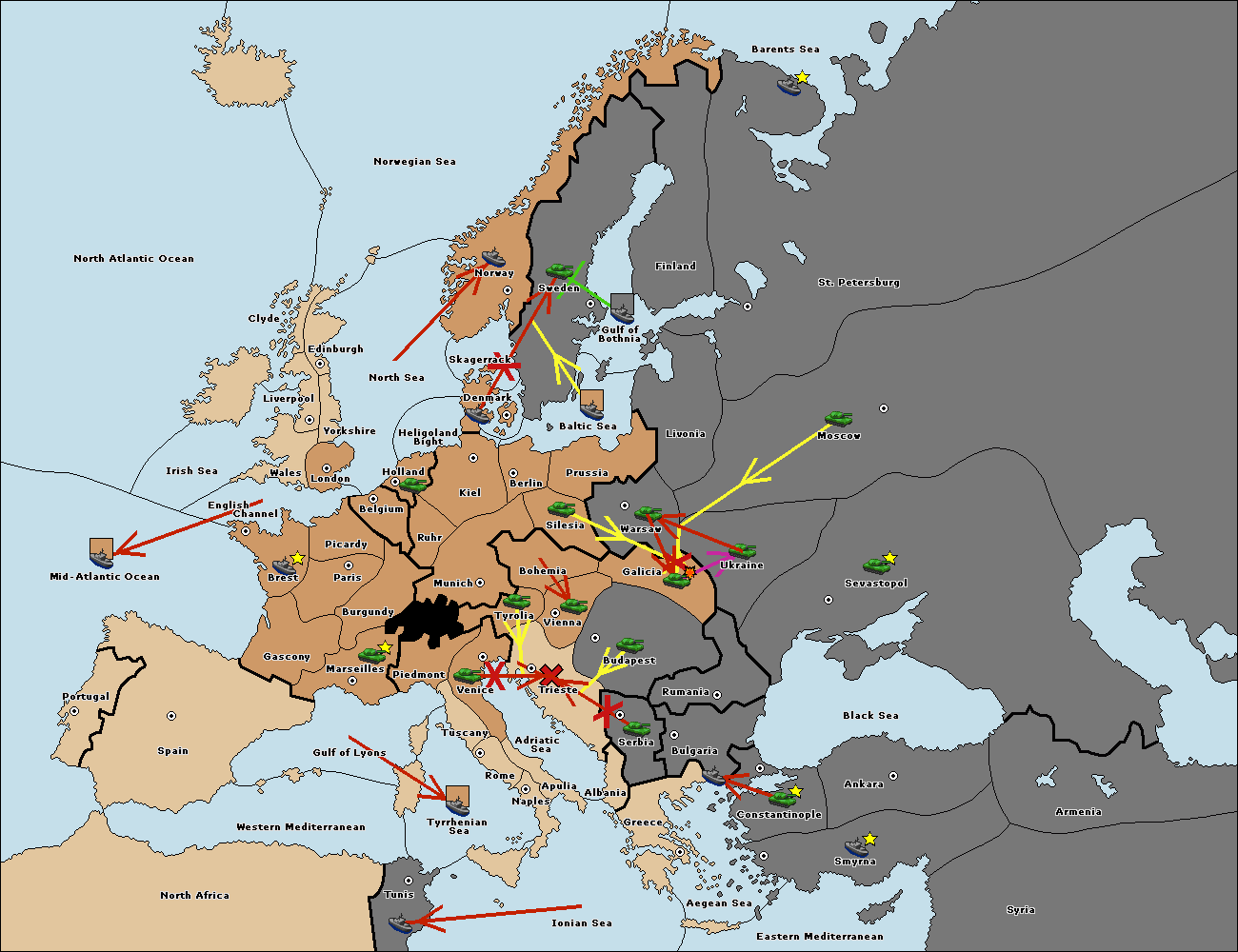 The fleet at Gulf of Lyons move to Tyrrhenian Sea.