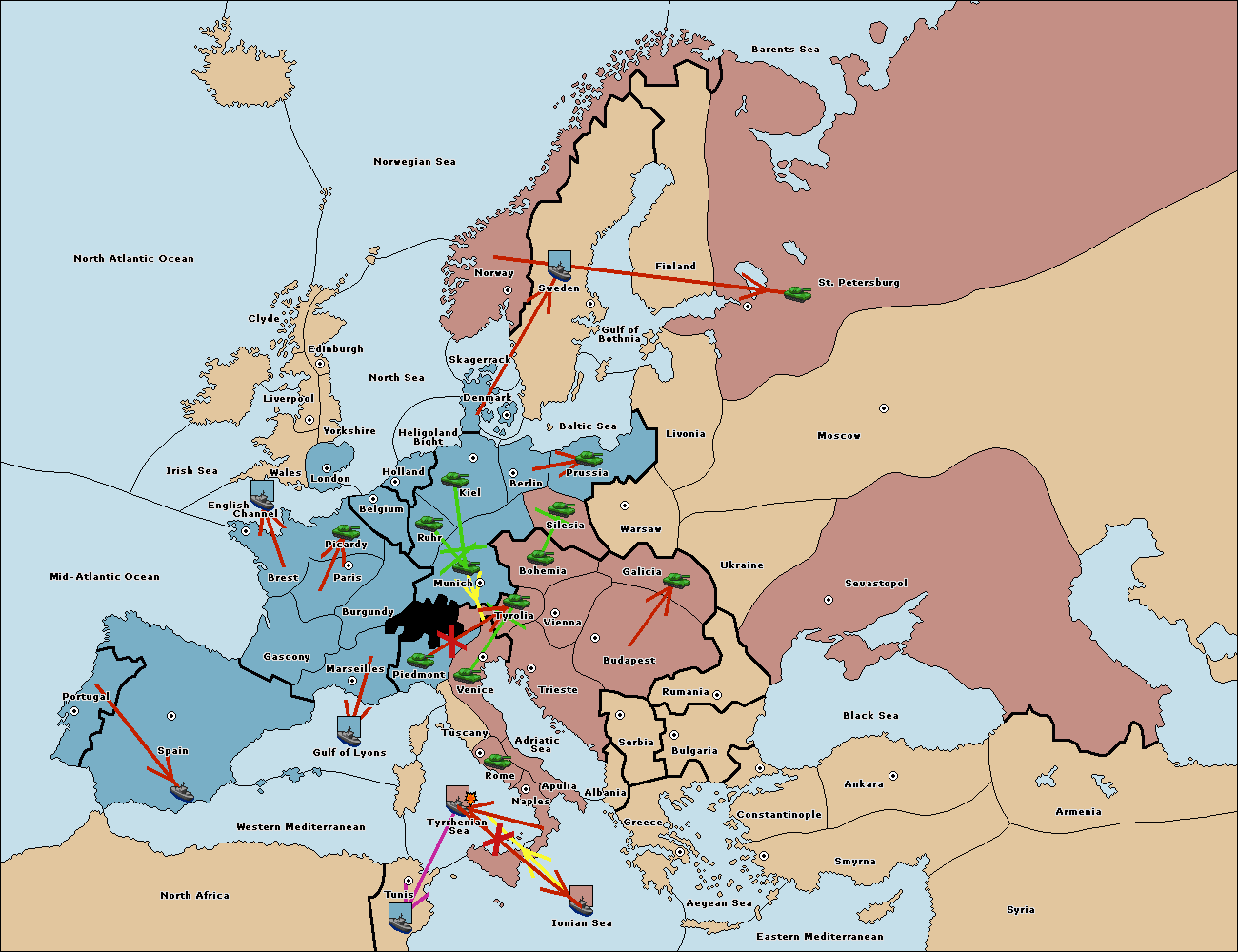 The fleet at Ionian Sea support move to Tunis from Tyrrhenian Sea.