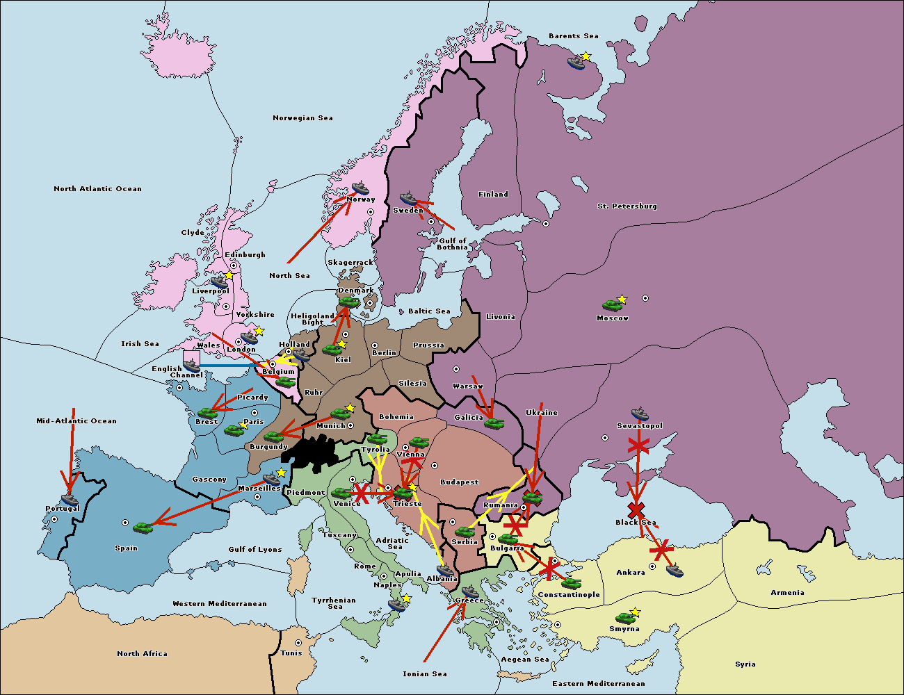 The fleet at Western Mediterranean move to Tyrrhenian Sea.