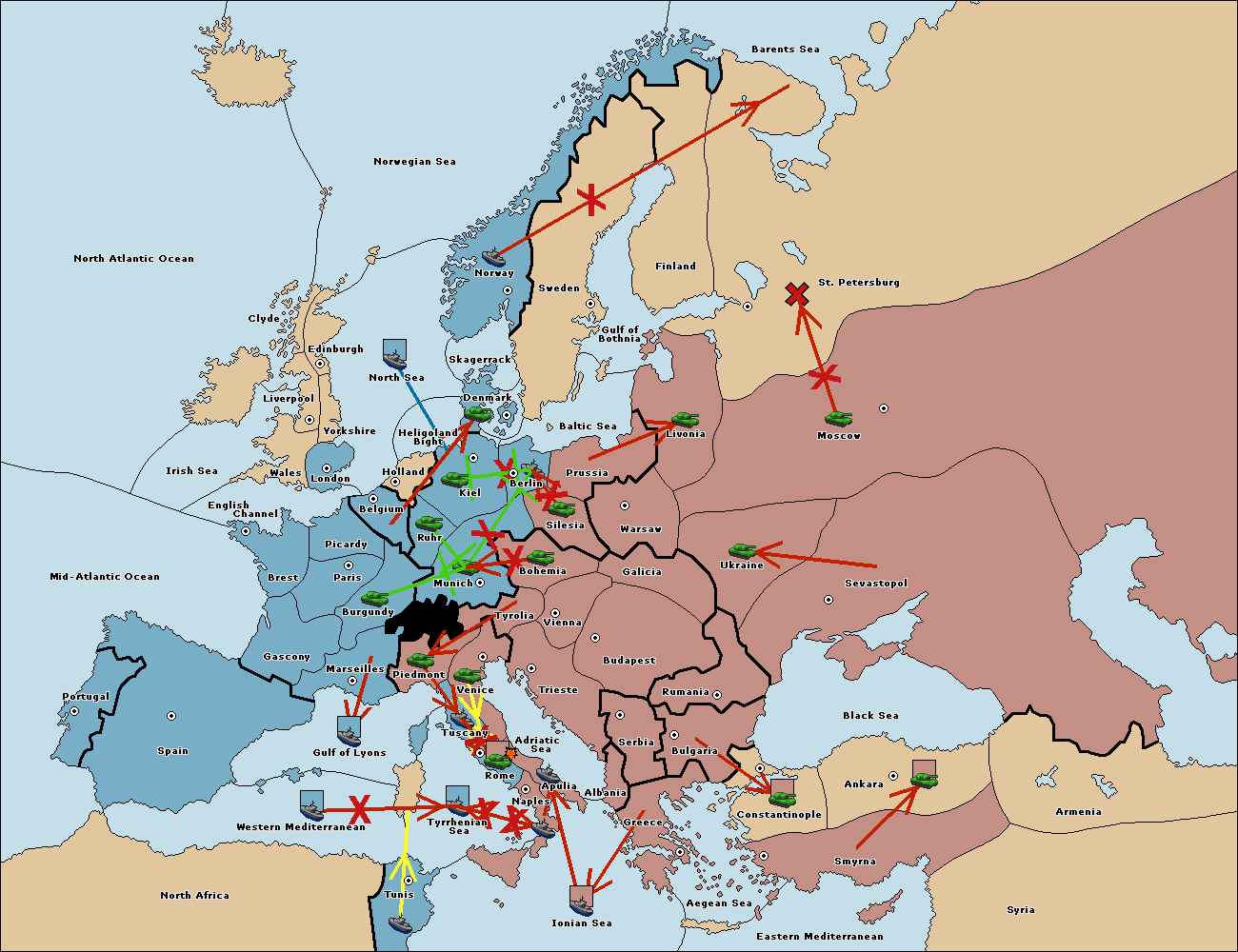 The fleet at Western Mediterranean move to Tyrrhenian Sea.