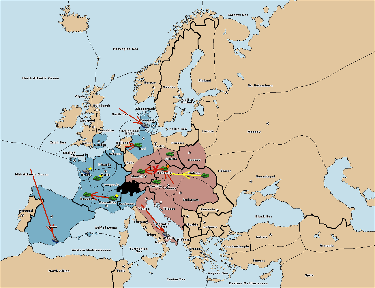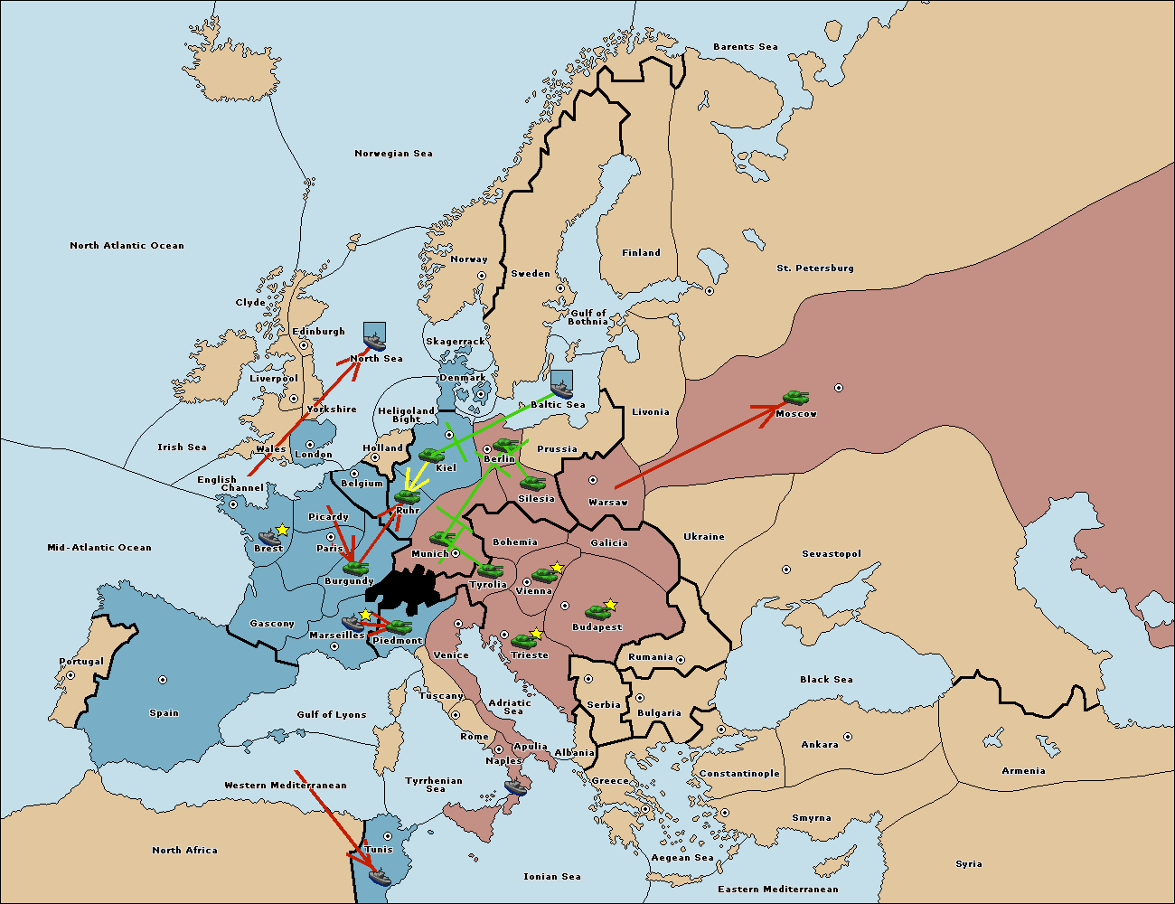 The fleet at Spain (South Coast) move to Western Mediterranean.
