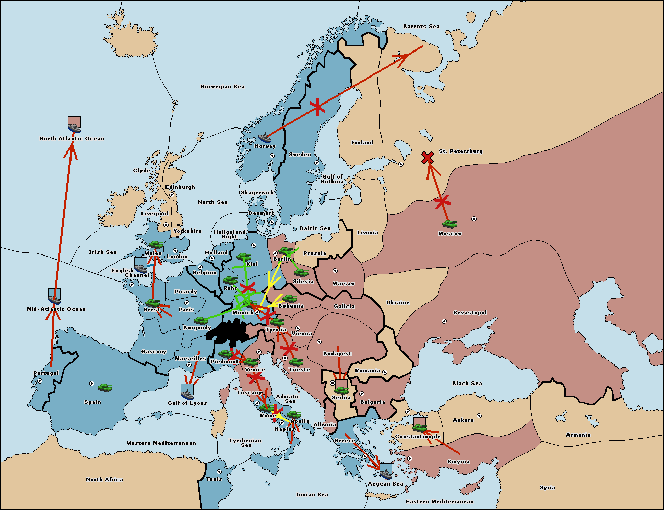 The army at Tyrolia move to Munich.