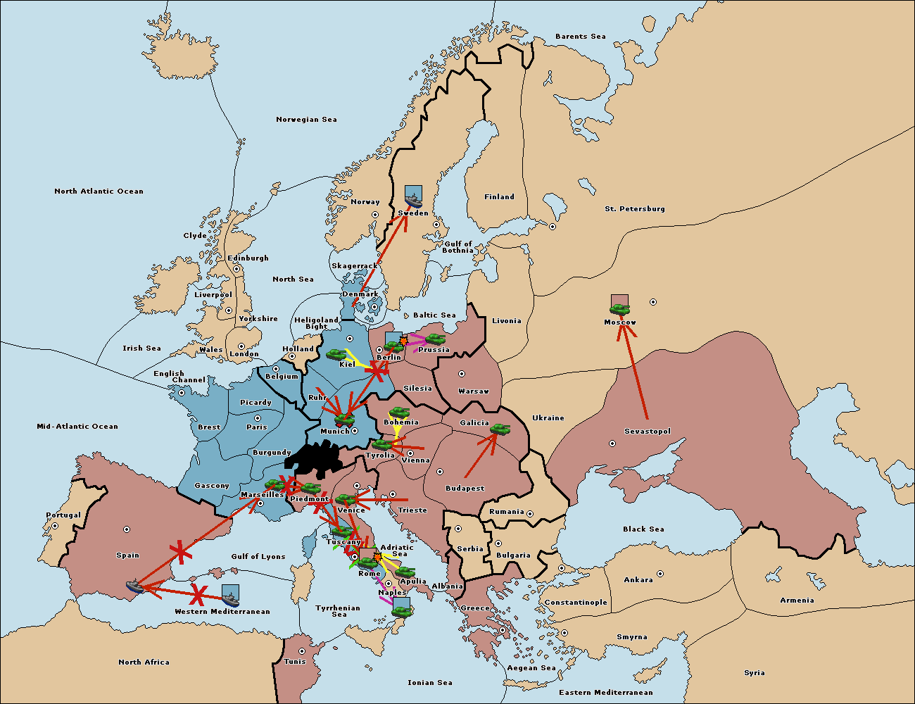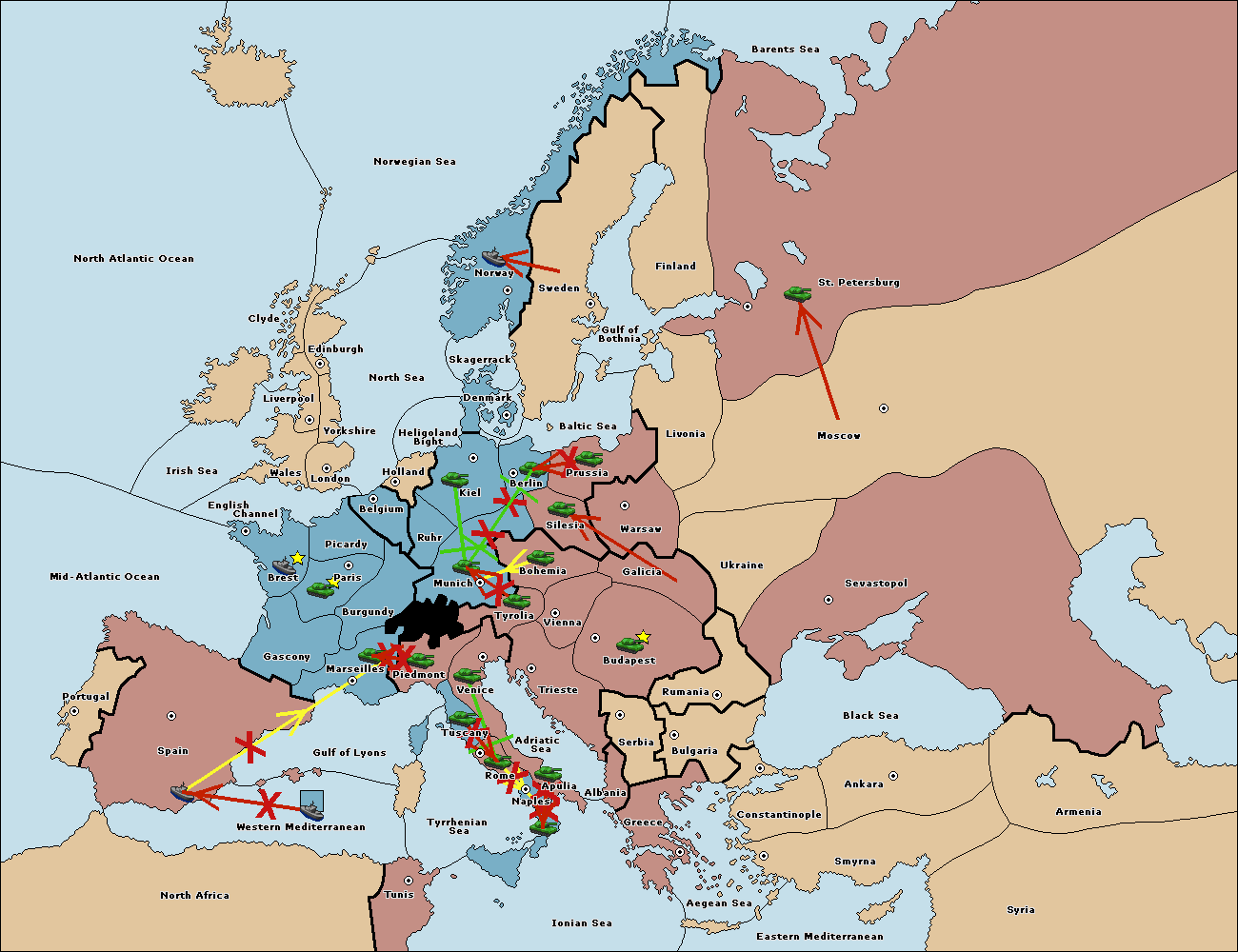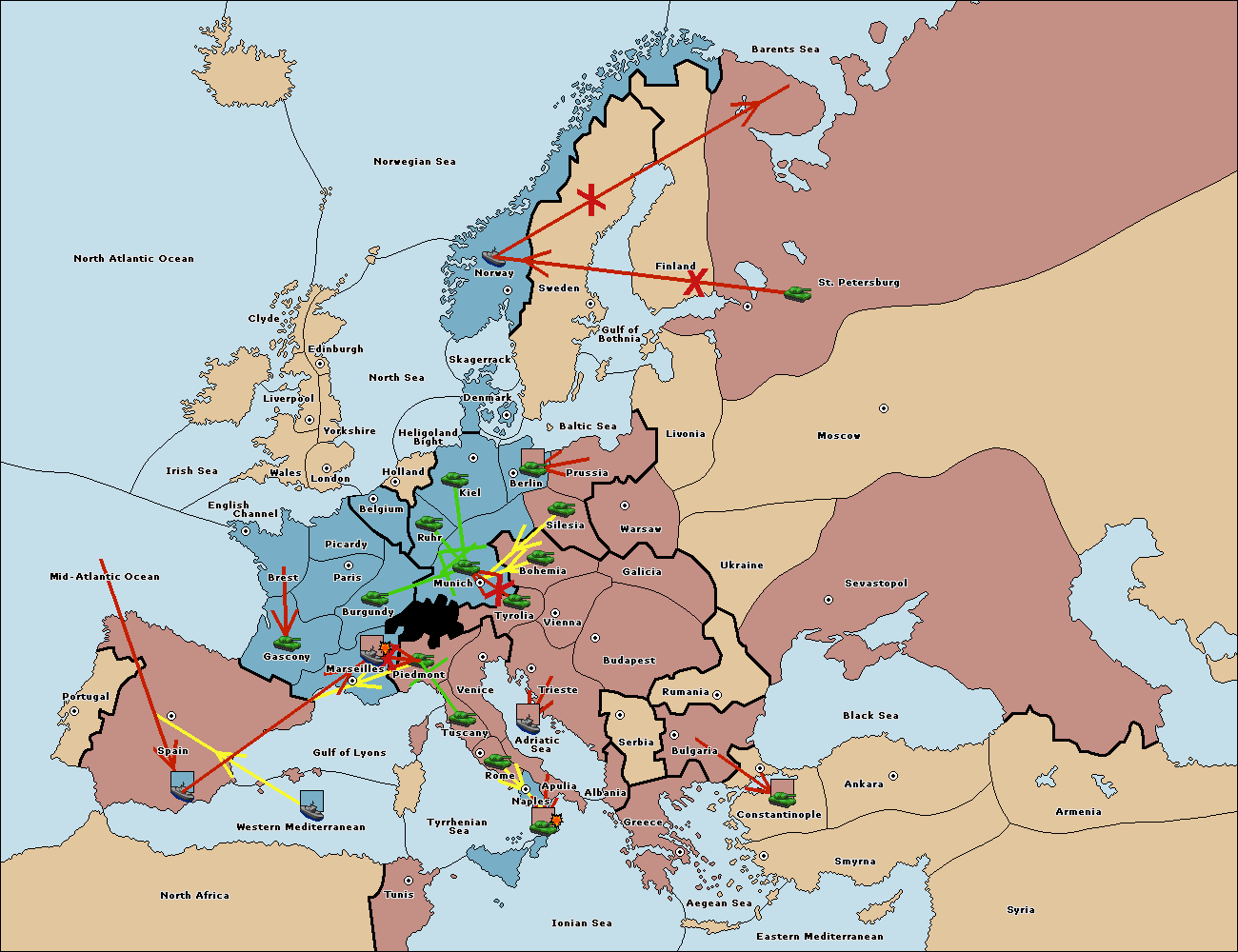 The fleet at Spain (South Coast) support move to Marseilles from Piedmont.