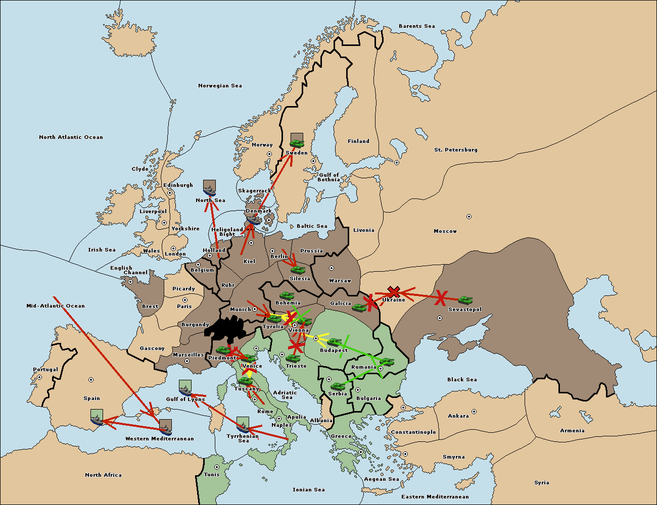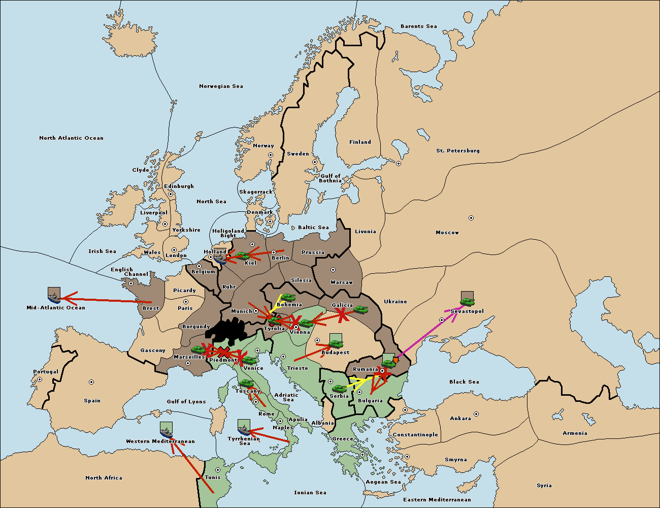 The fleet at Mid-Atlantic Ocean move to Western Mediterranean.