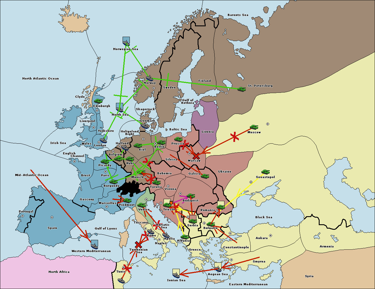 The fleet at Tyrrhenian Sea support move to Tunis from Ionian Sea.