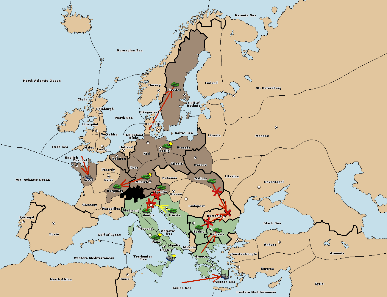 The fleet at Tyrrhenian Sea support hold to Tuscany.