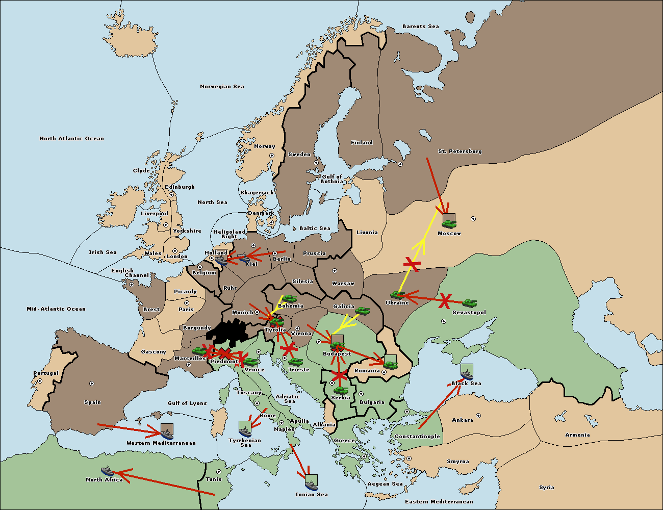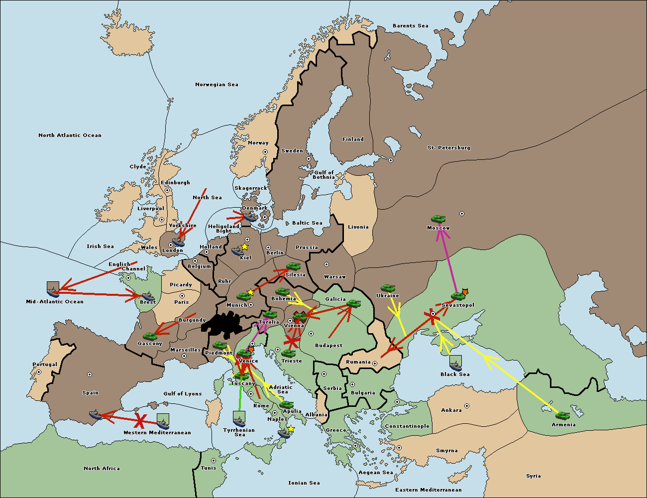The fleet at North Africa move to Mid-Atlantic Ocean.