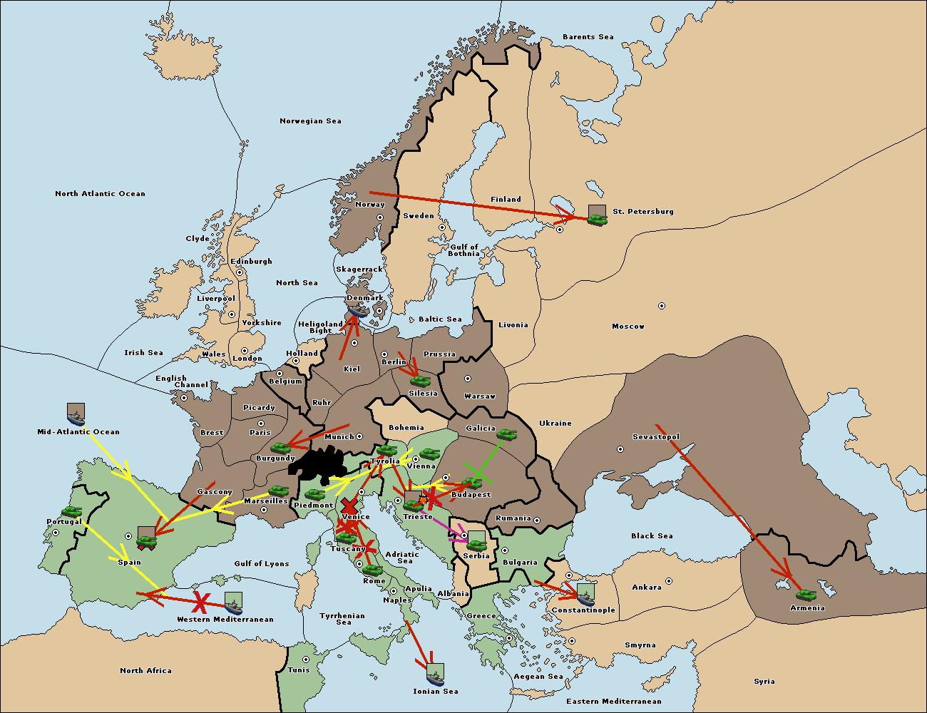 The fleet at Bulgaria (South Coast) move to Constantinople.