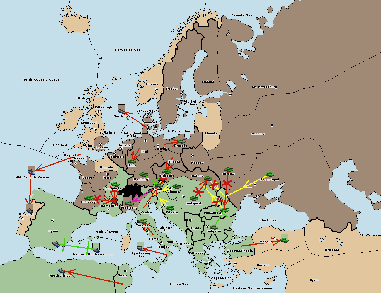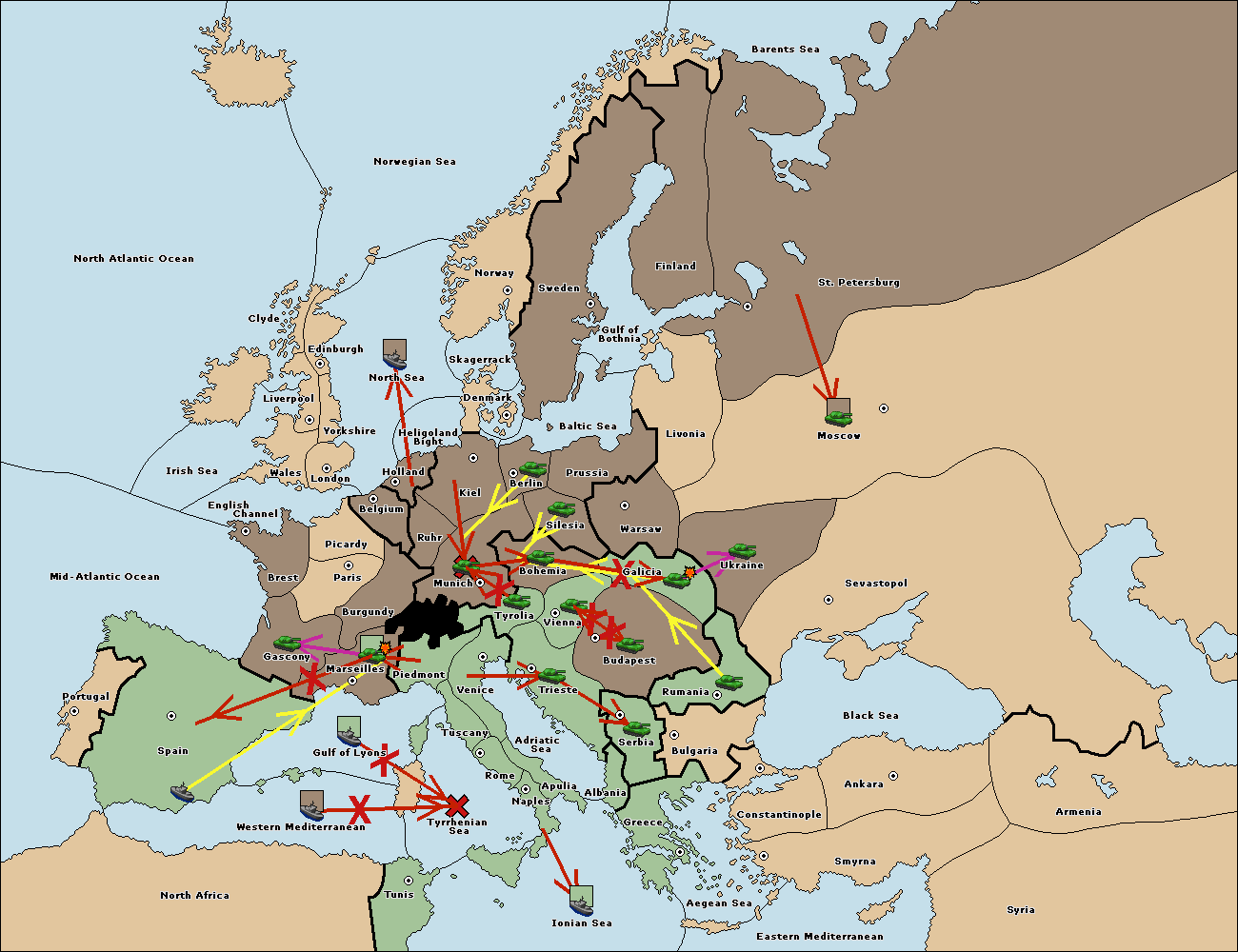 The fleet at Spain (South Coast) support move to Marseilles from Piedmont.