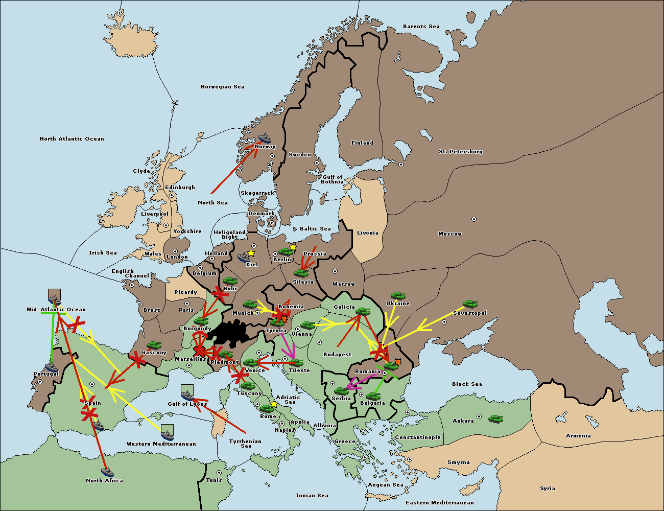 The fleet at Mid-Atlantic Ocean move to Western Mediterranean.