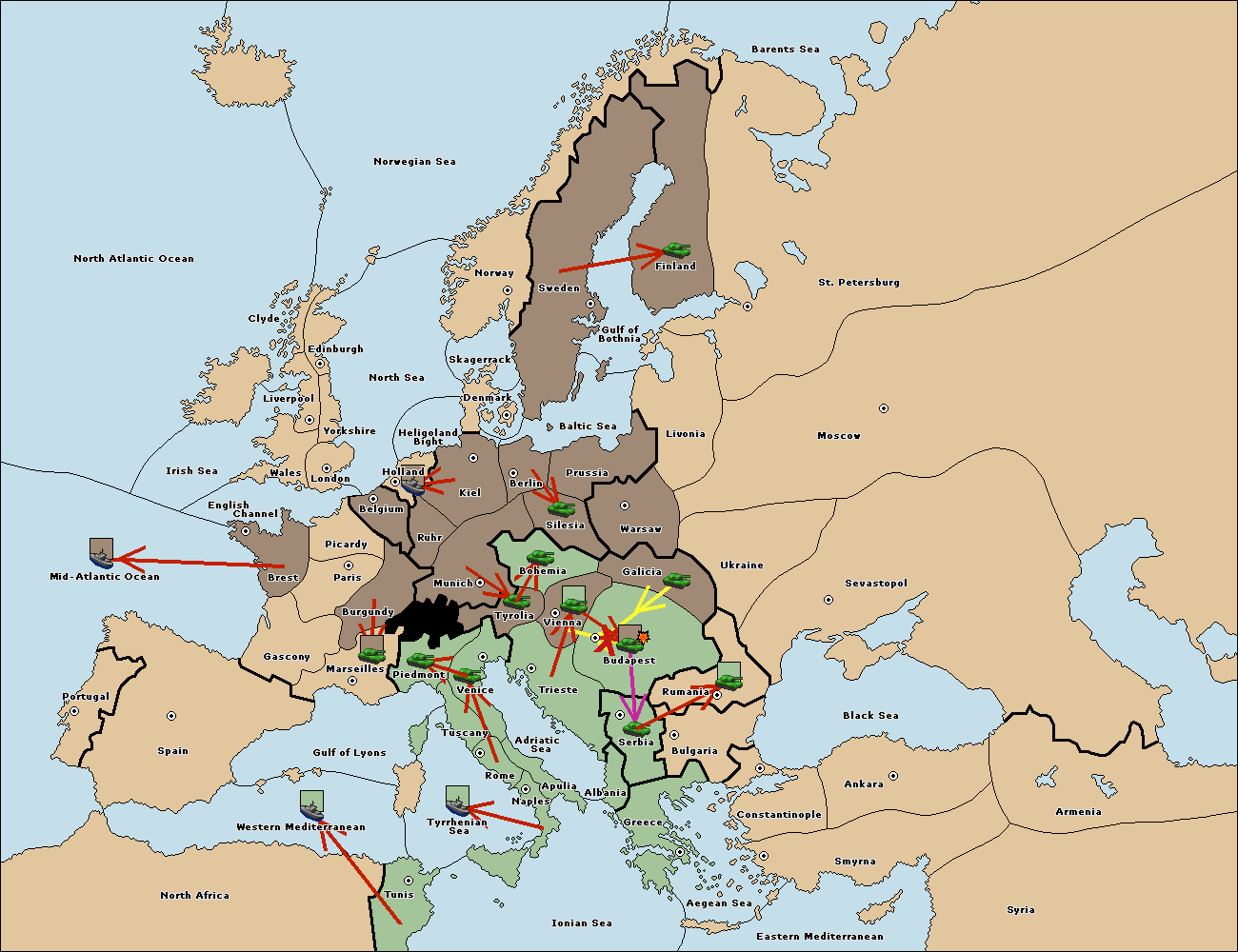 The army at Tyrolia move to Vienna.