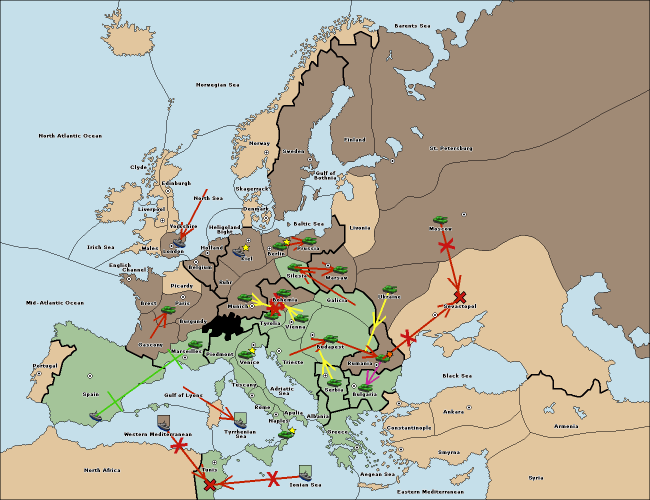 The fleet at Spain (South Coast) support hold to Marseilles.