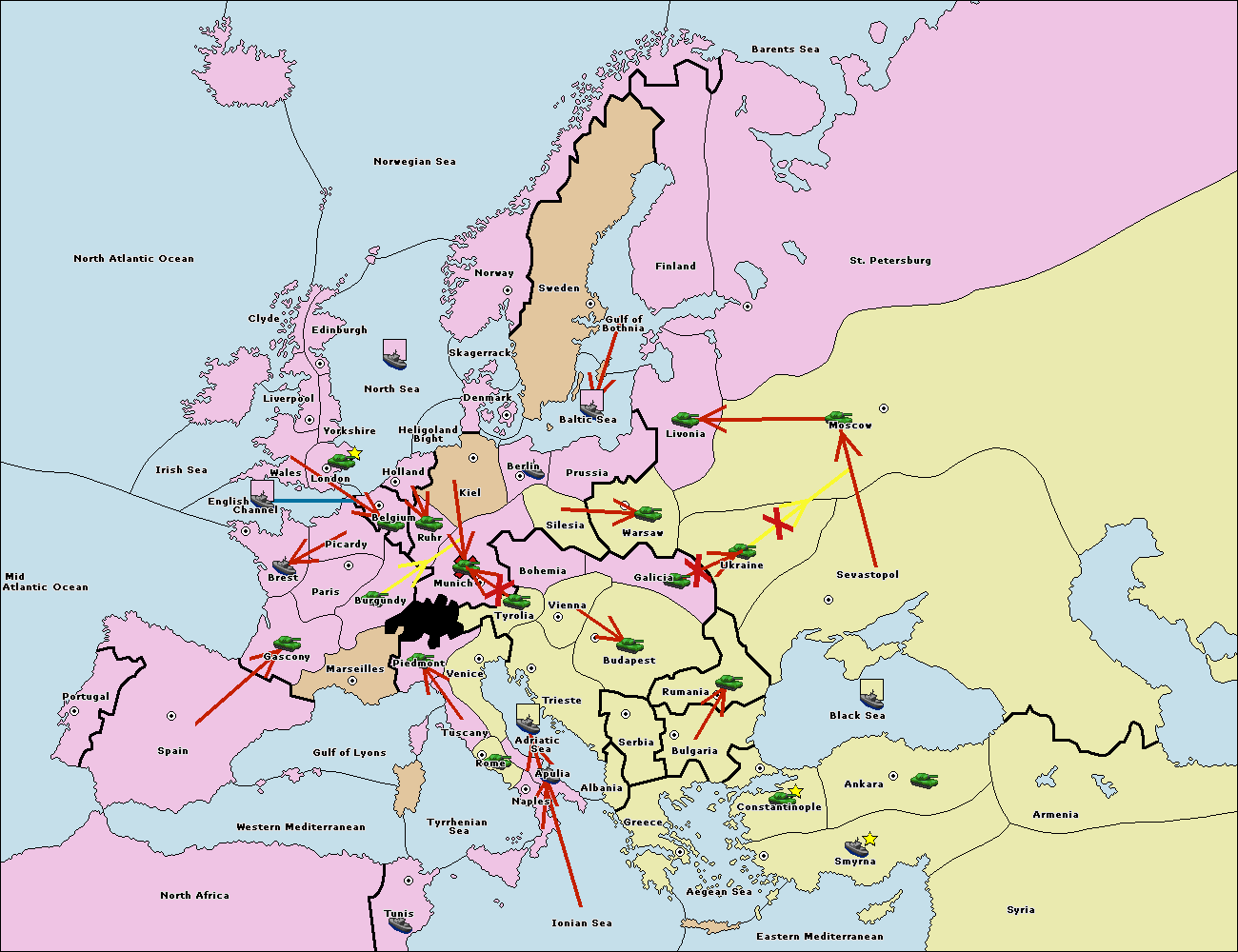 The fleet at Prussia move to Baltic Sea.