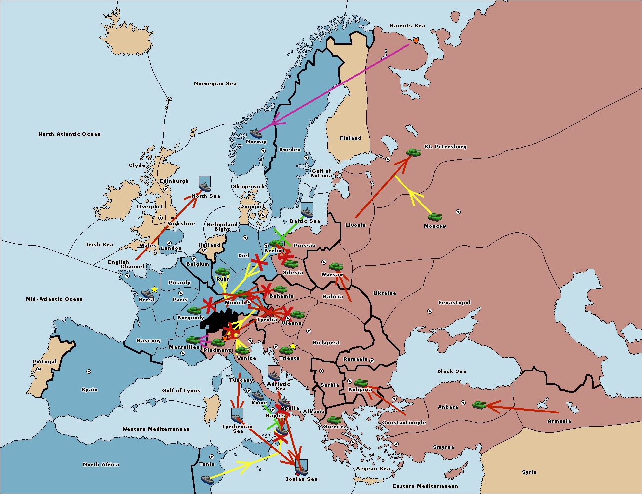 The army at Tyrolia support move to Munich from Silesia.