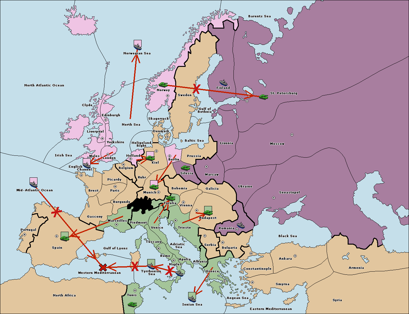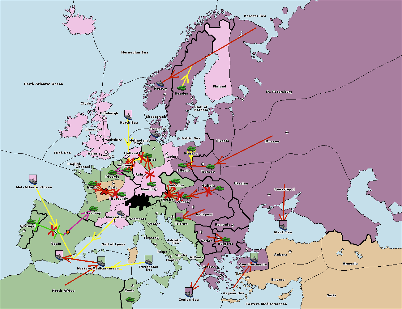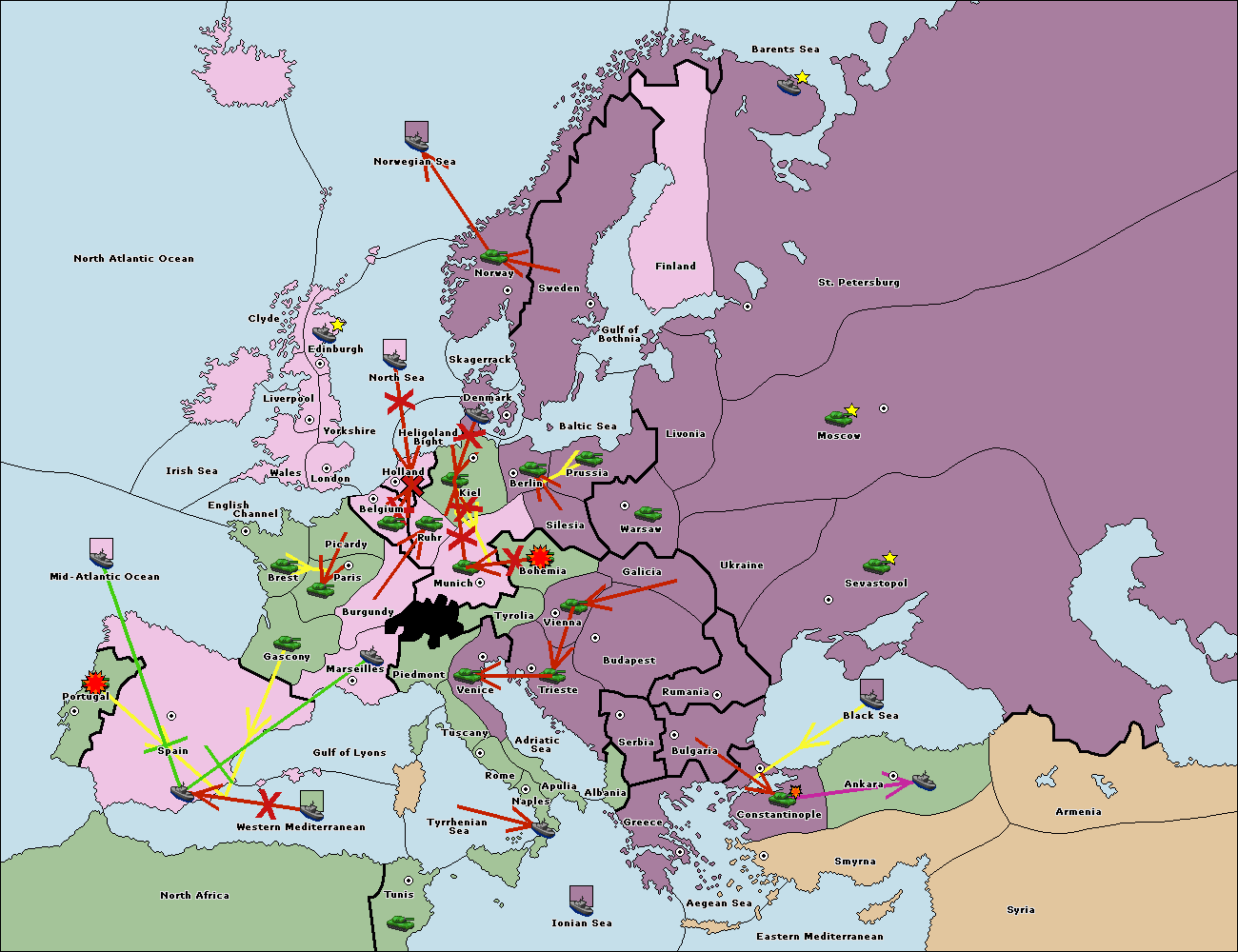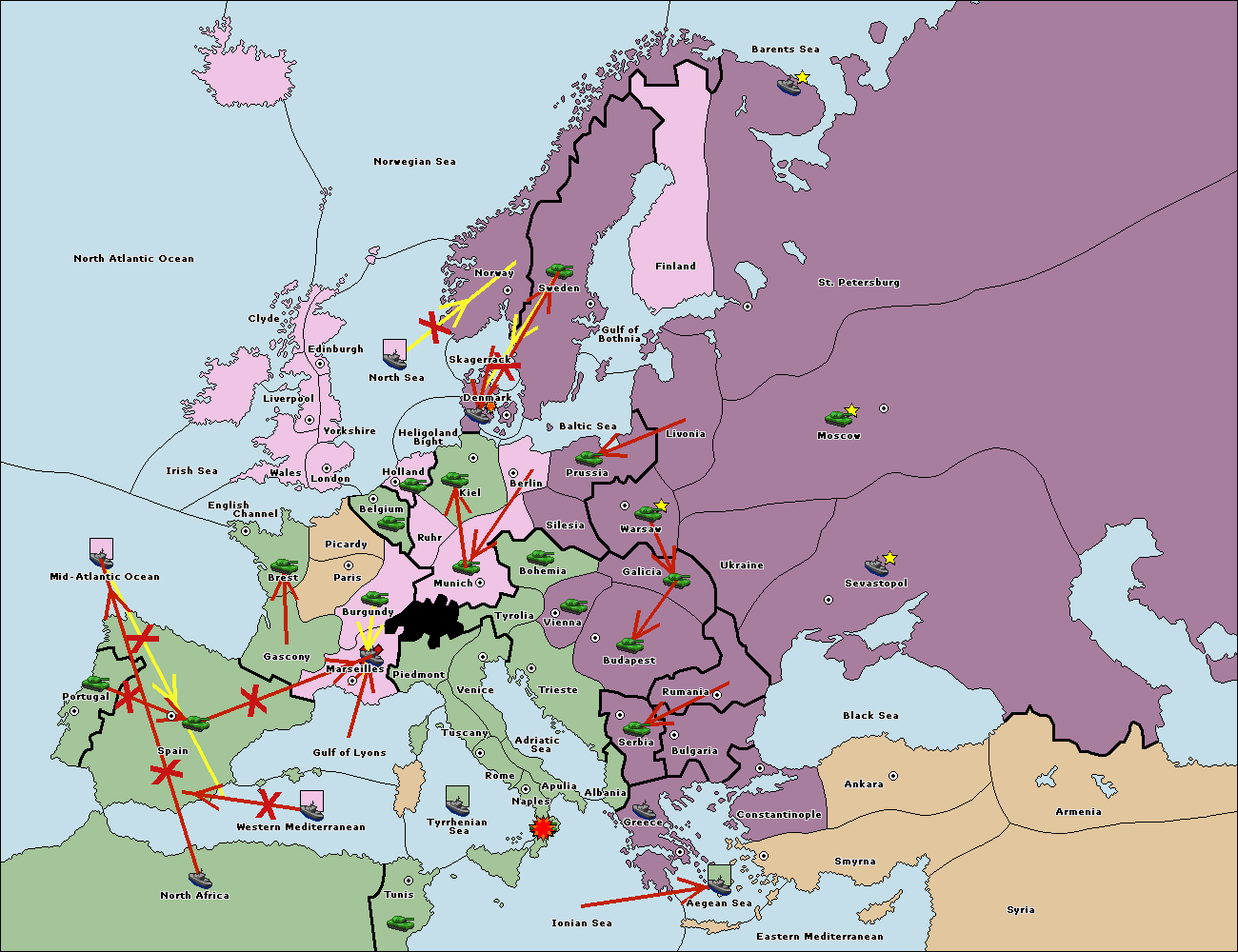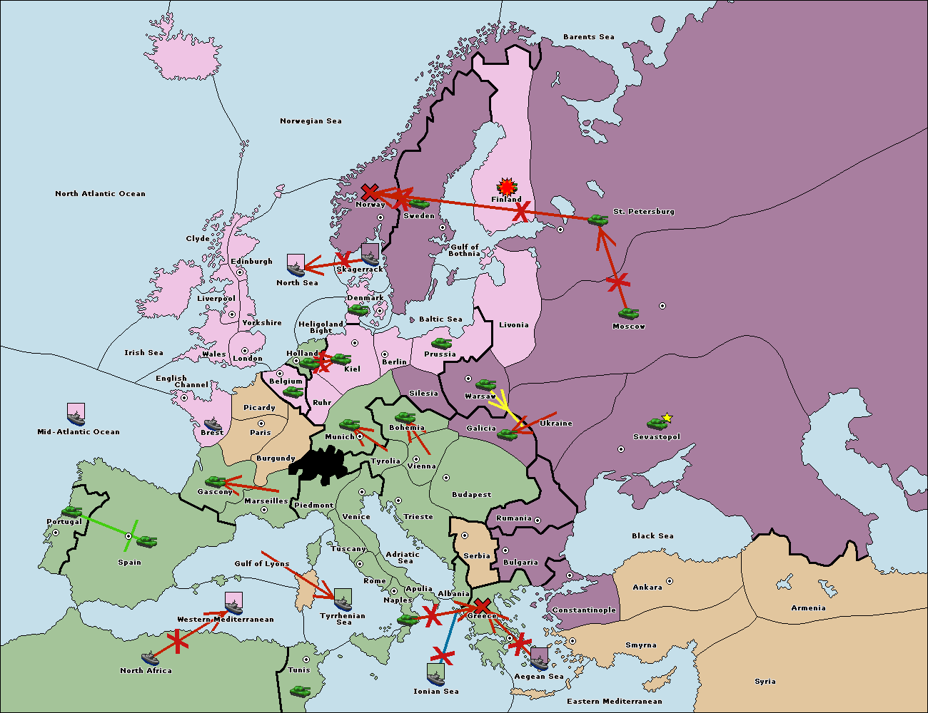 The fleet at Bulgaria (North Coast) move to Constantinople.
