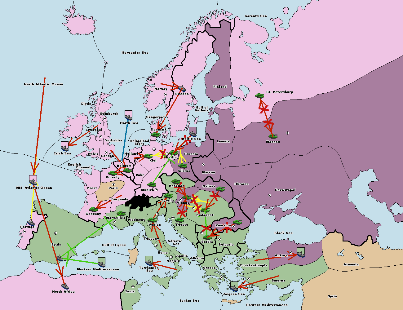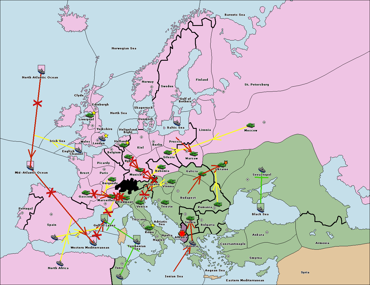 The fleet at Mid-Atlantic Ocean move to Western Mediterranean.