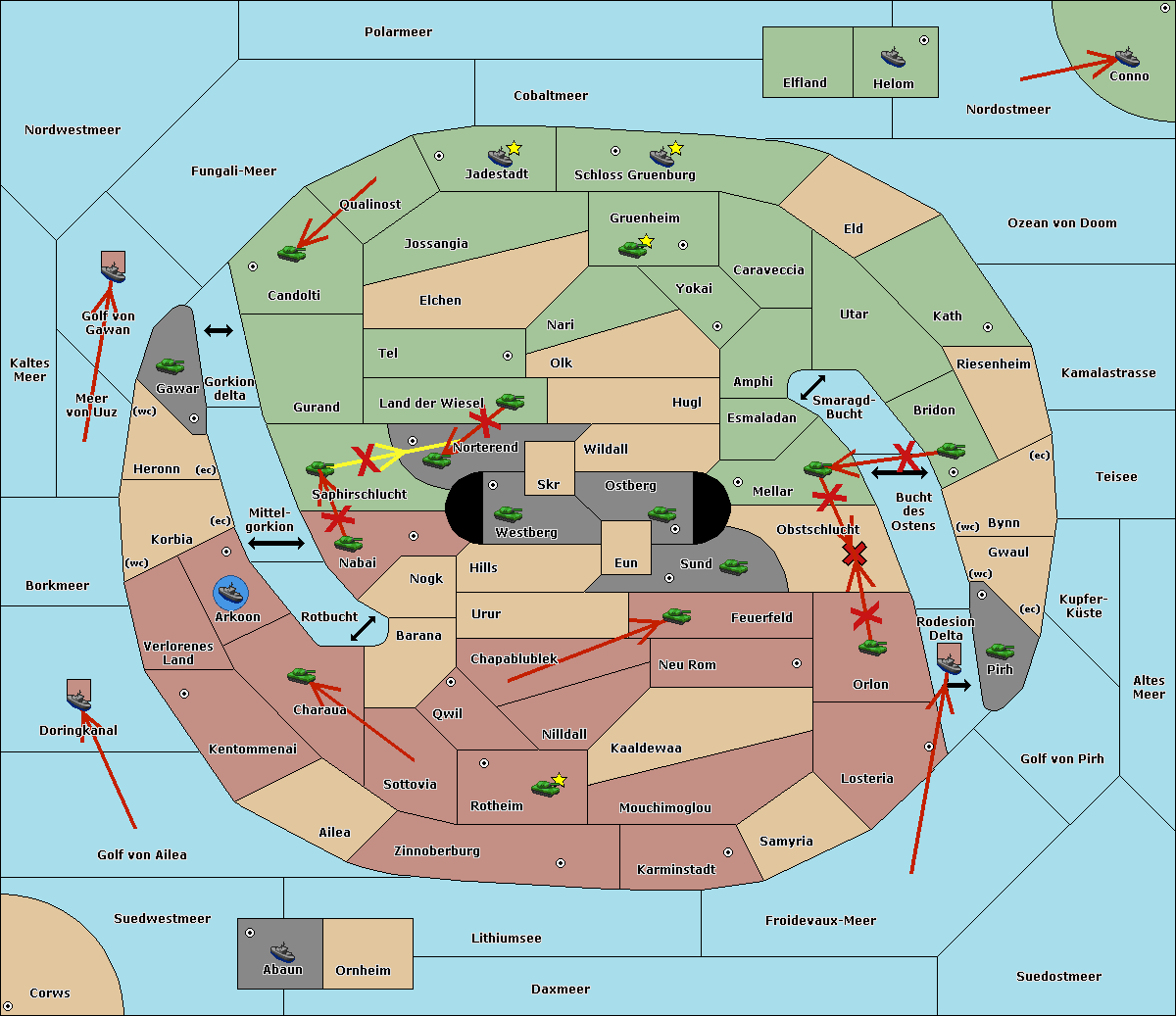 The fleet at Schloss Gruenburg move to Ozean von Doom.