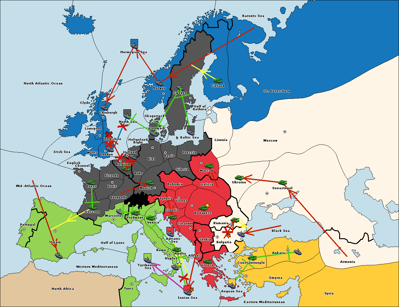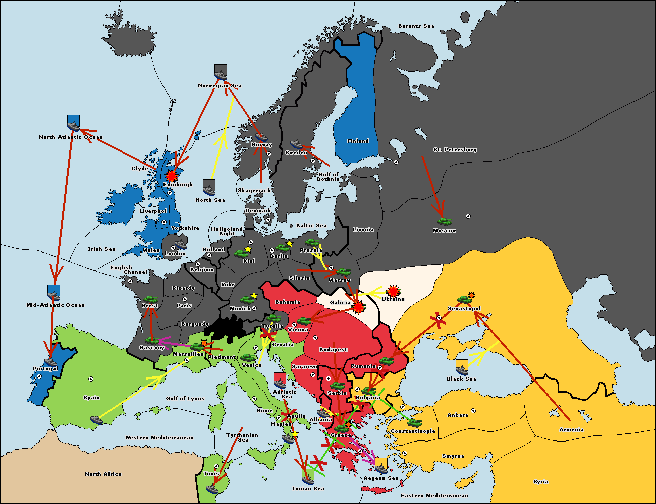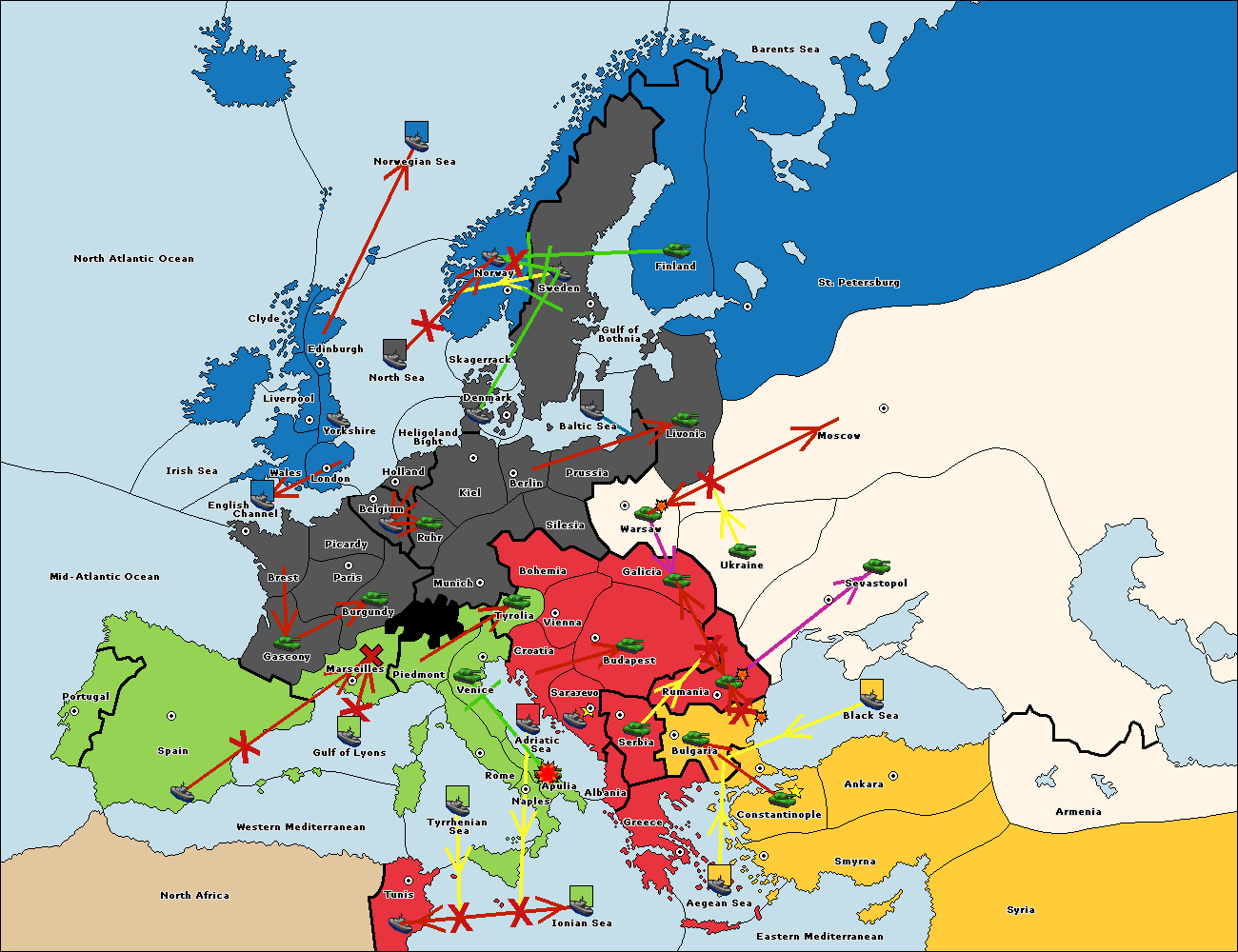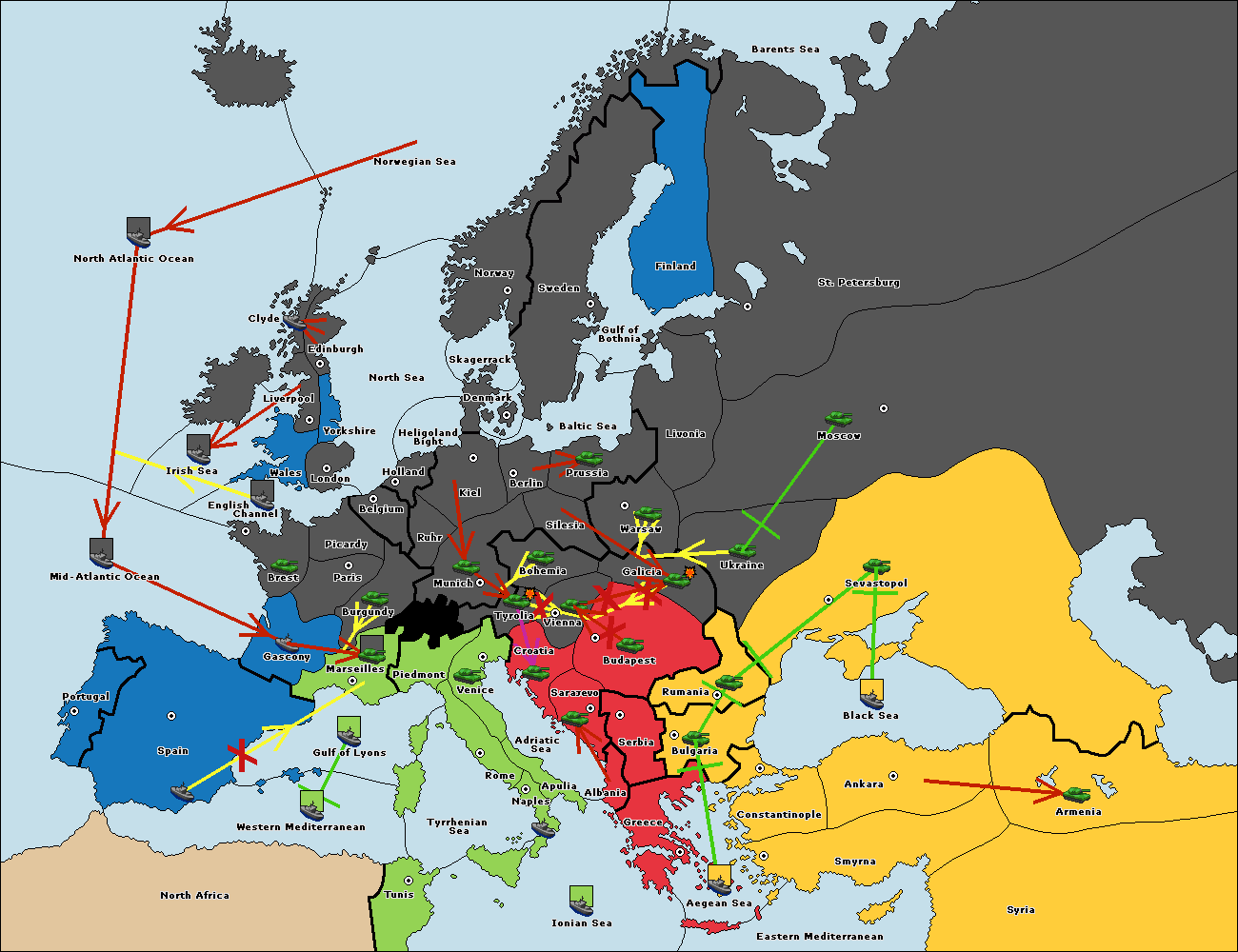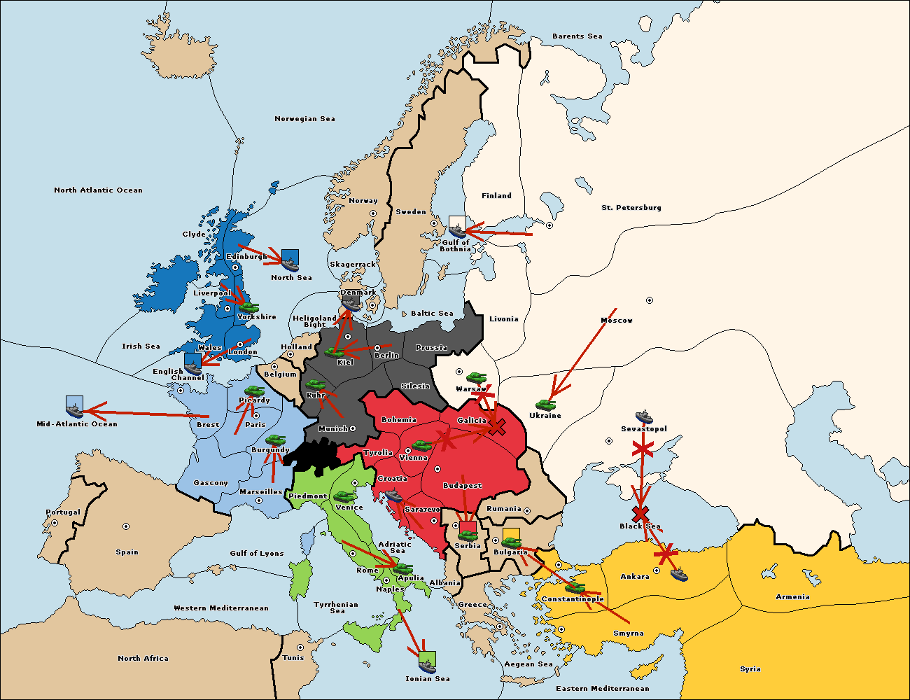 The fleet at Sevastopol support move to Rumania from Galicia.