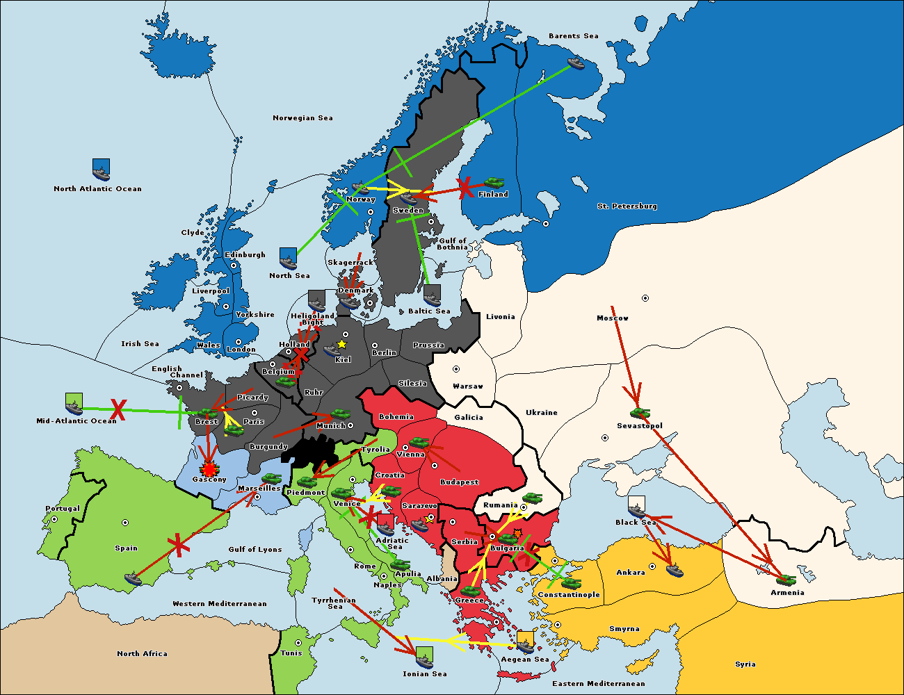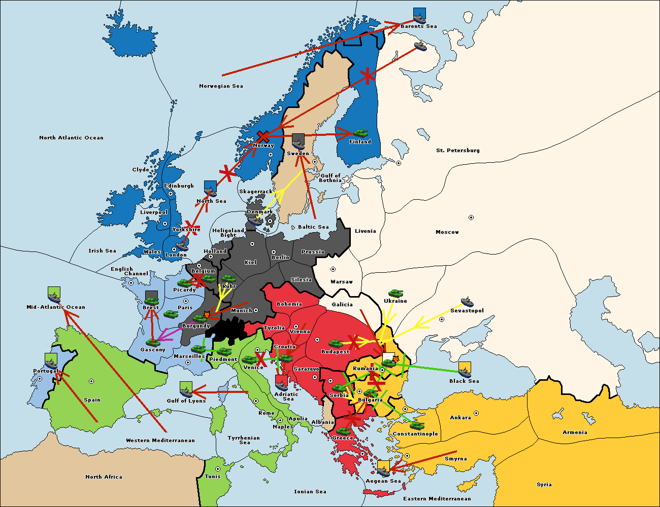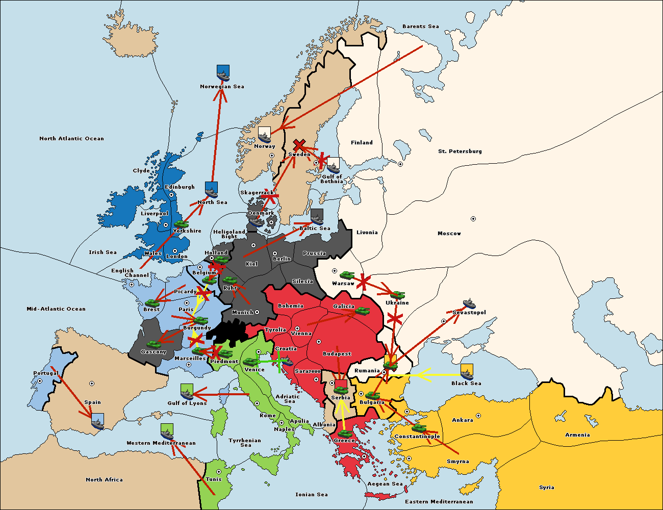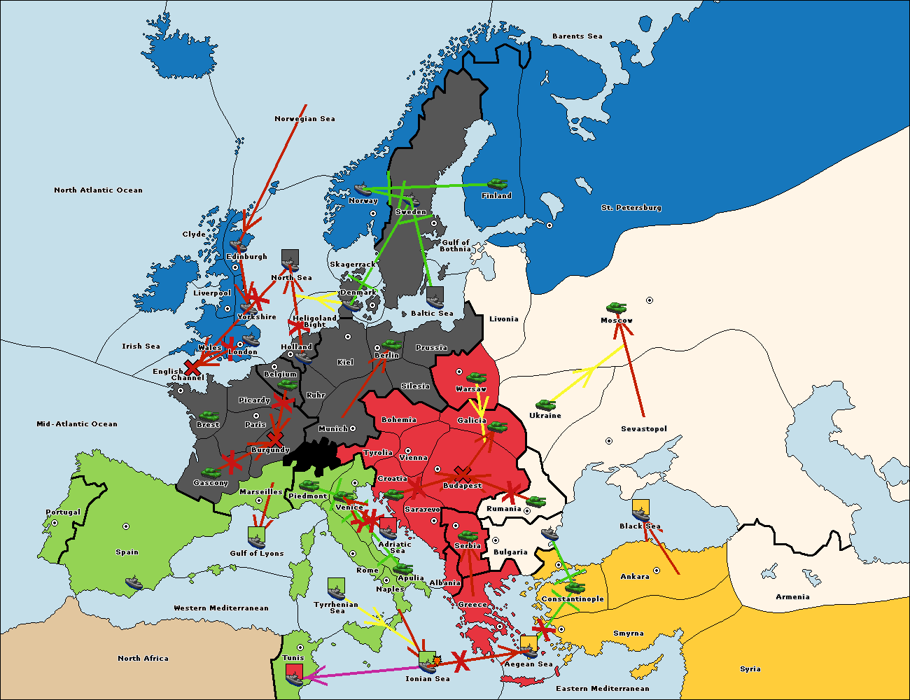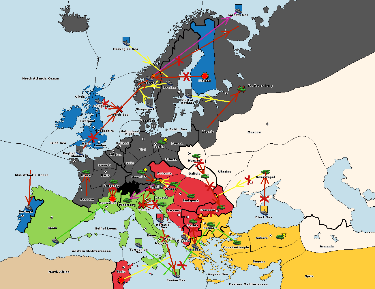 The fleet at Sevastopol support move to Rumania from Galicia.