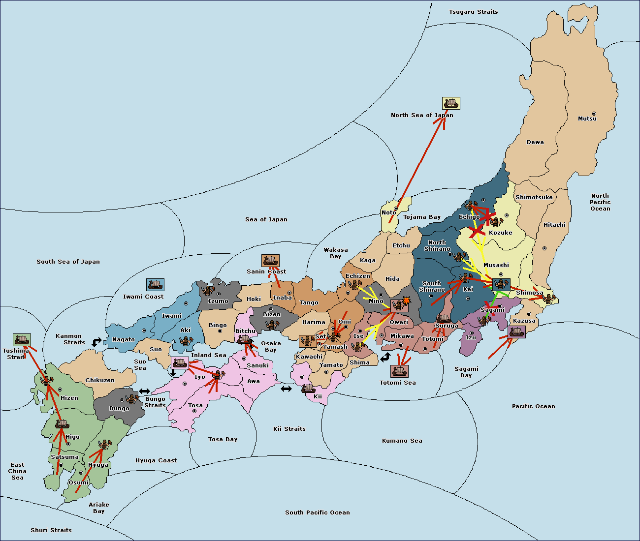 The fleet at Izu support move to Suruga (10) from Totomi (9).