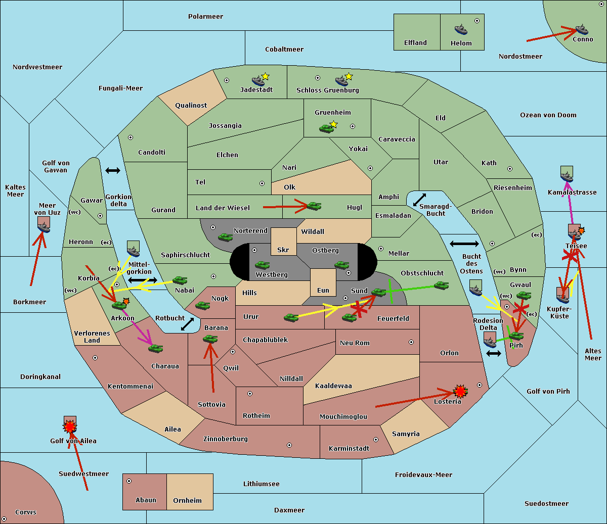 The fleet at Schloss Gruenburg move to Ozean von Doom.