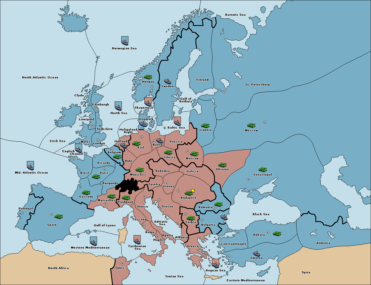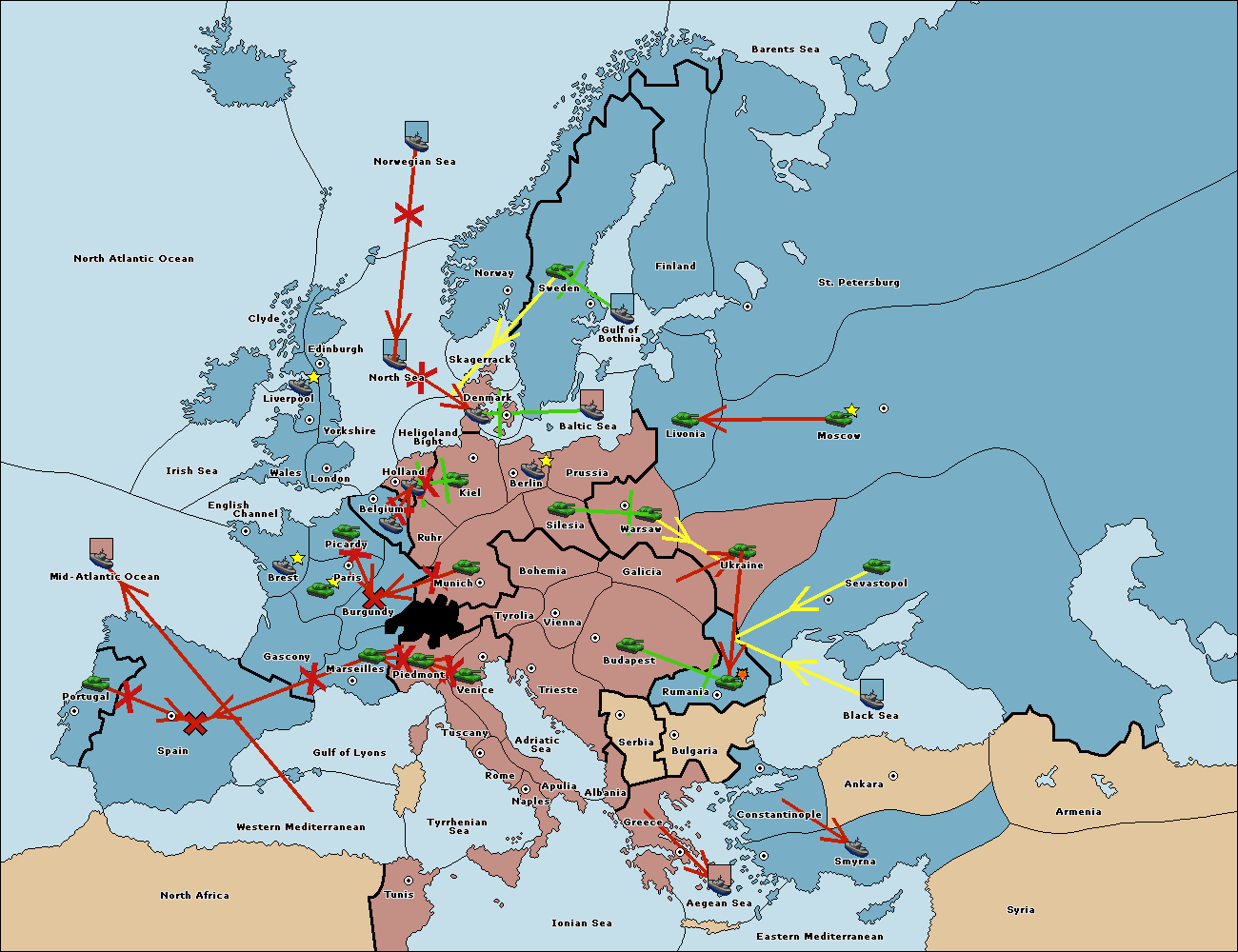 The fleet at Bulgaria (North Coast) move to Constantinople.