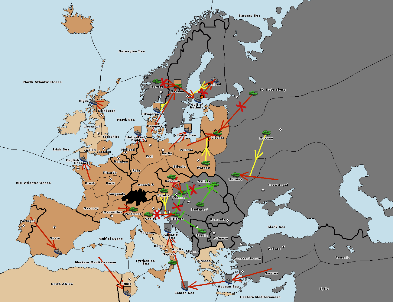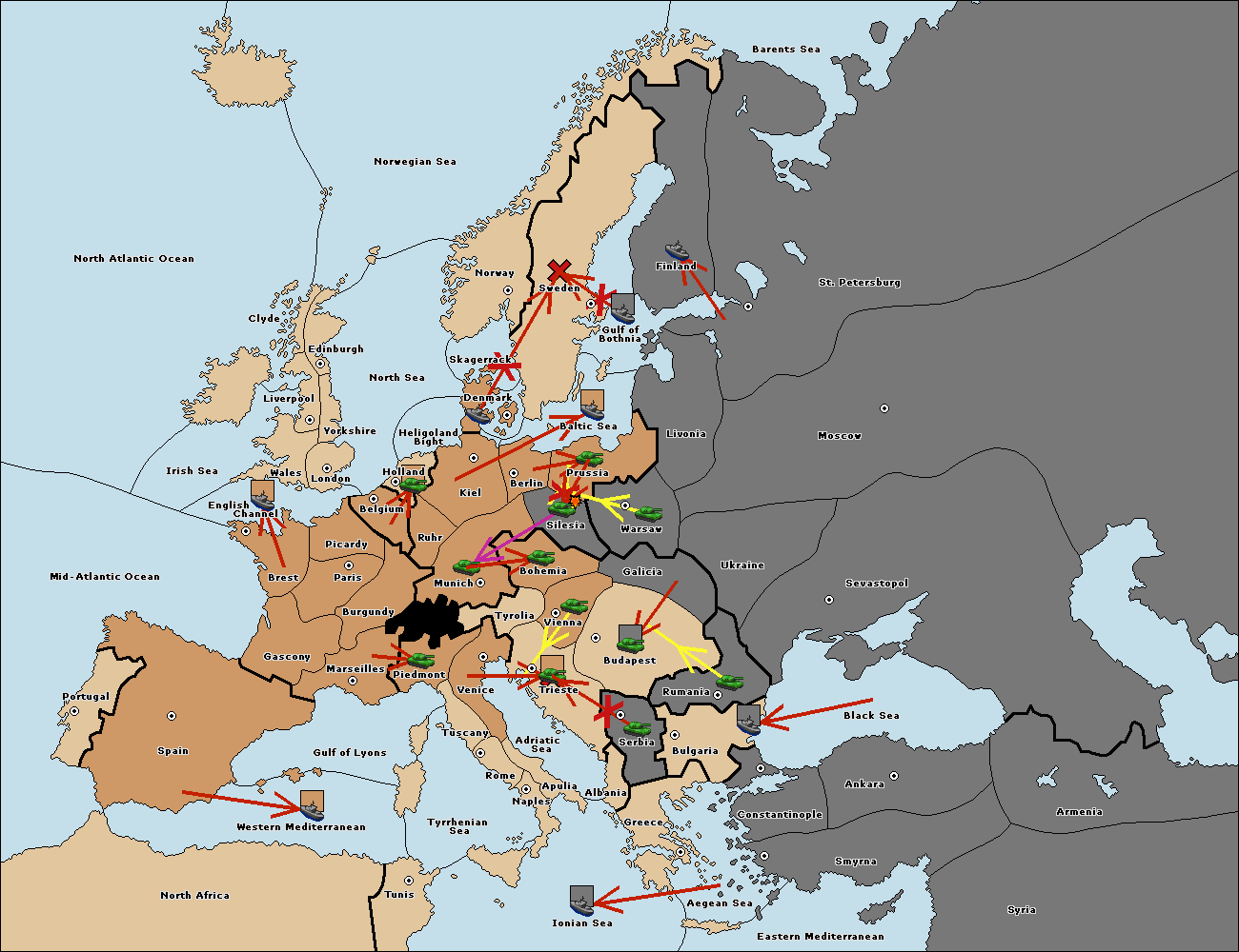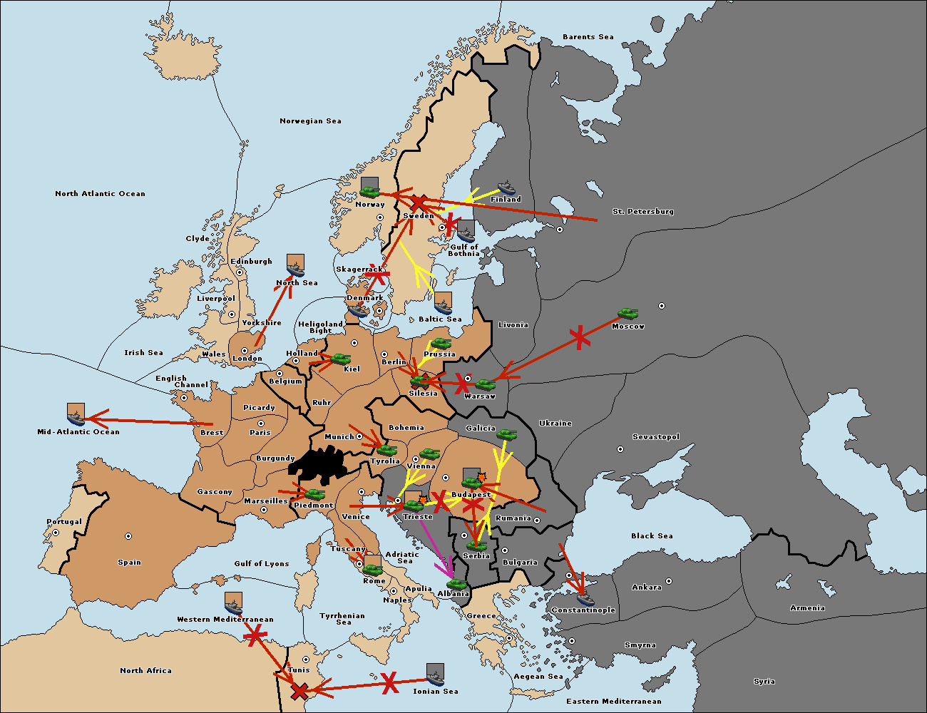 The fleet at Bulgaria (North Coast) move to Constantinople.
