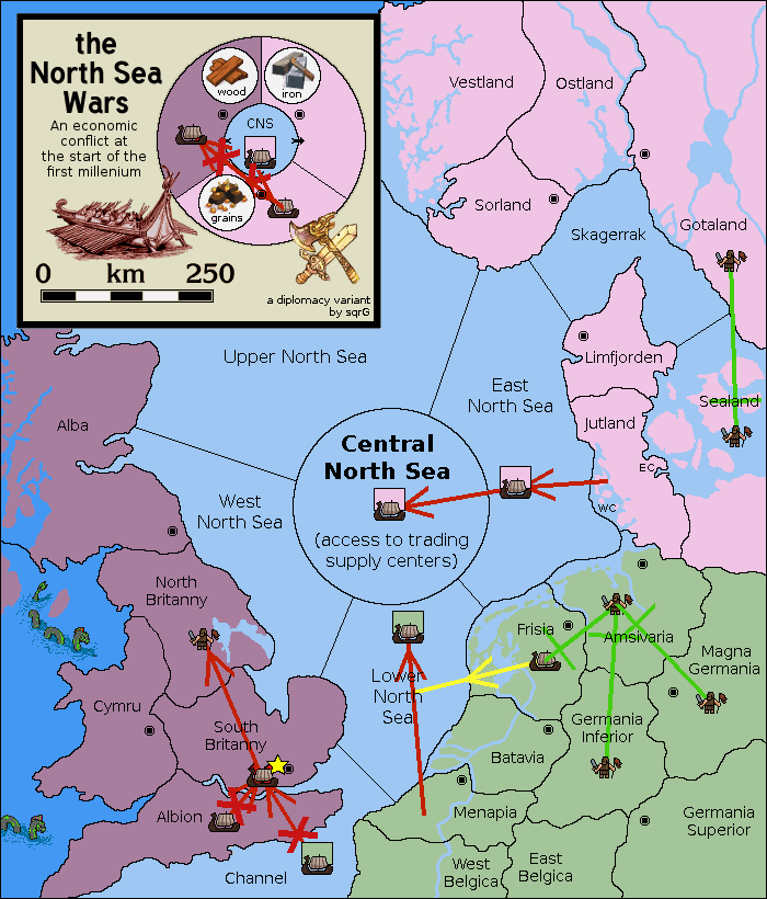 The fleet at Frisia support move to Lower North Sea from Menapia.
