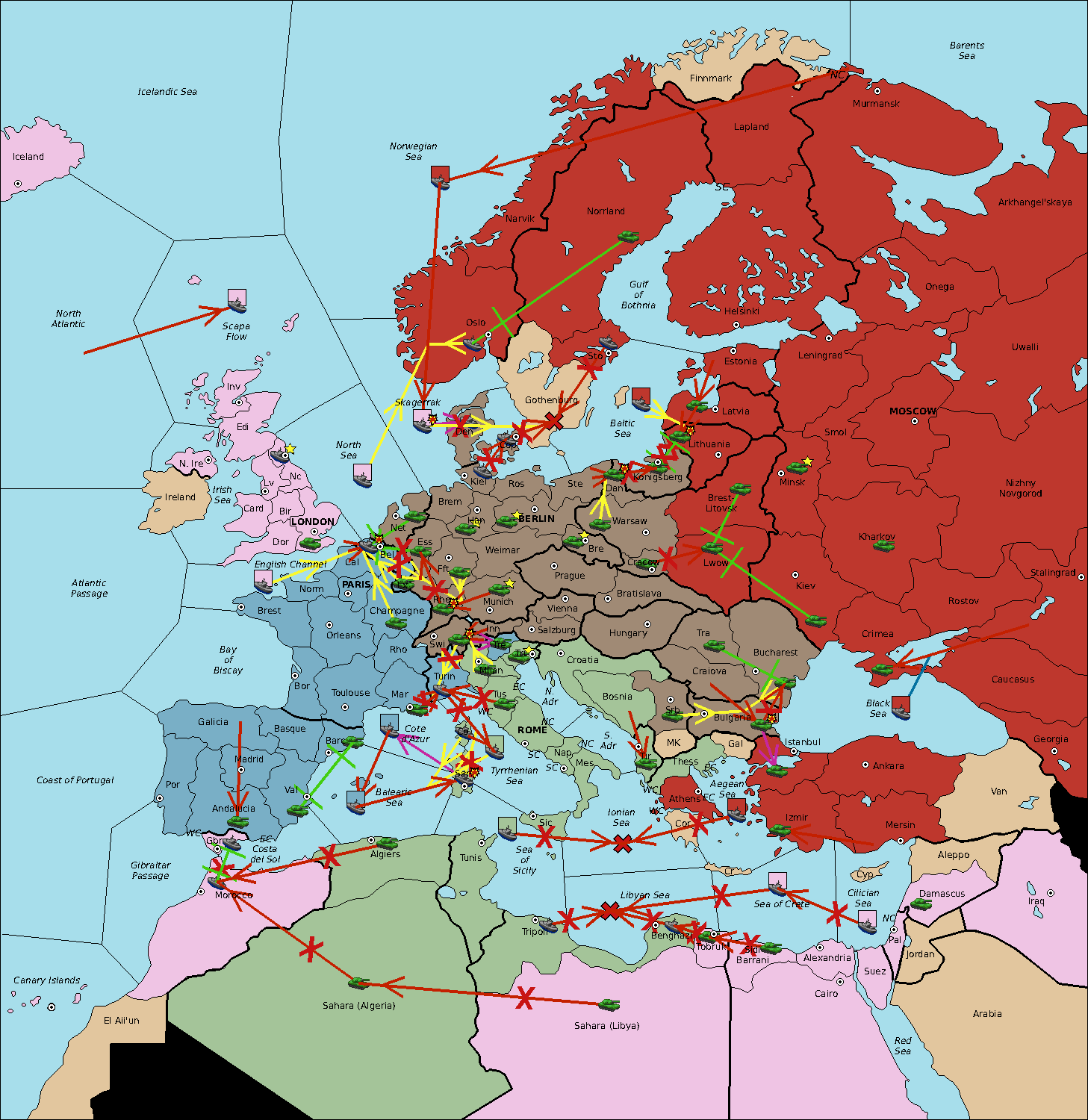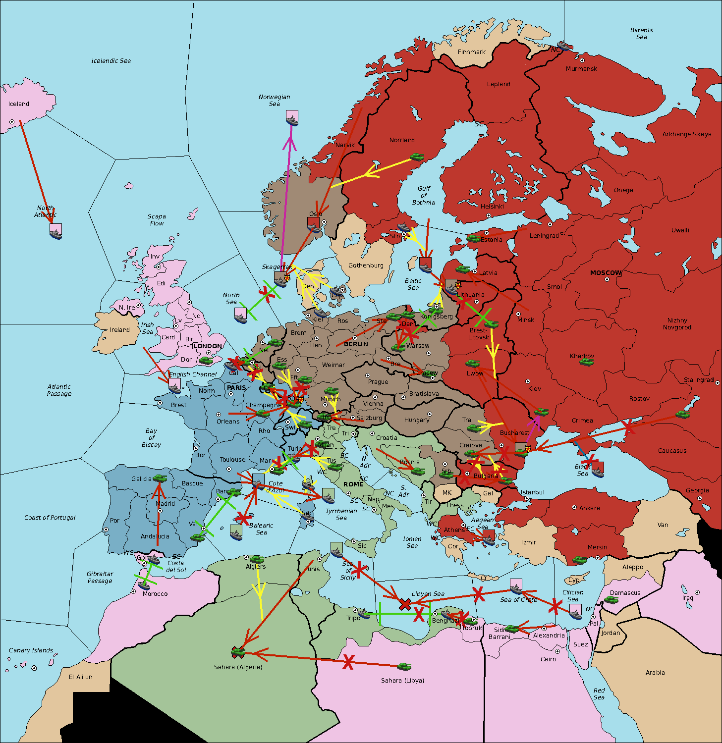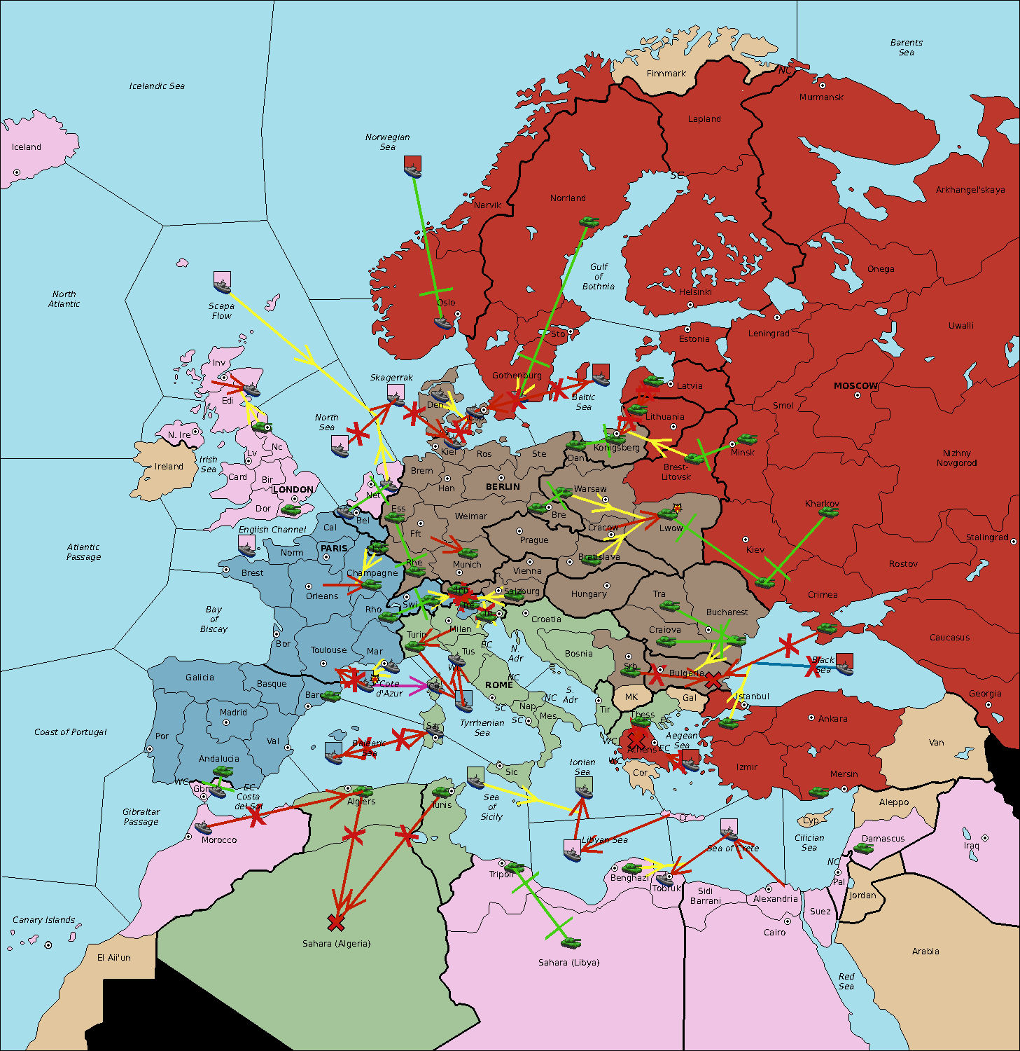 The fleet at Balearic Sea move to Sardinia.