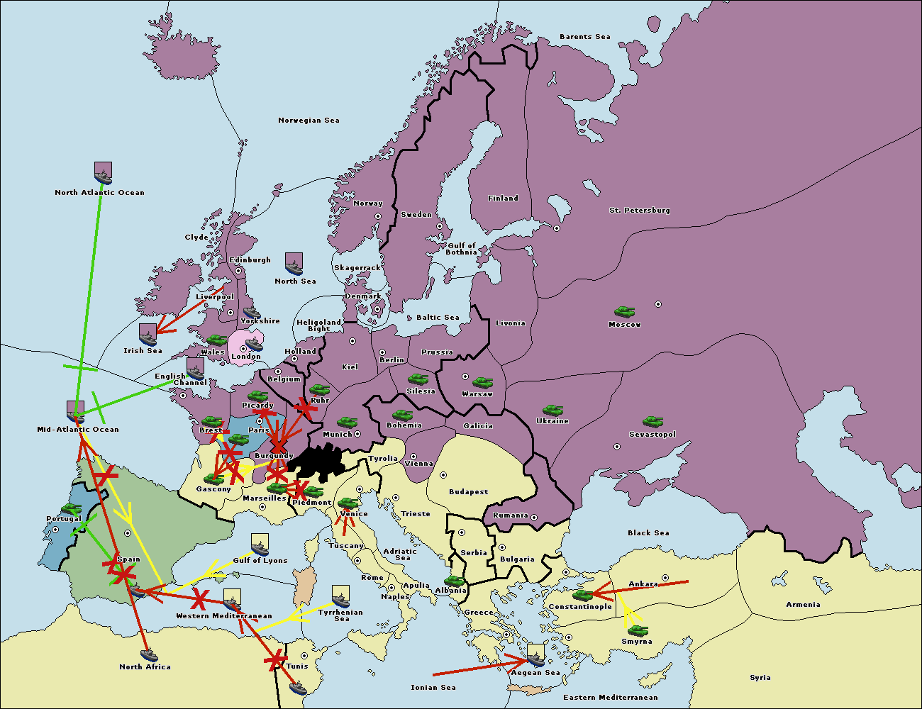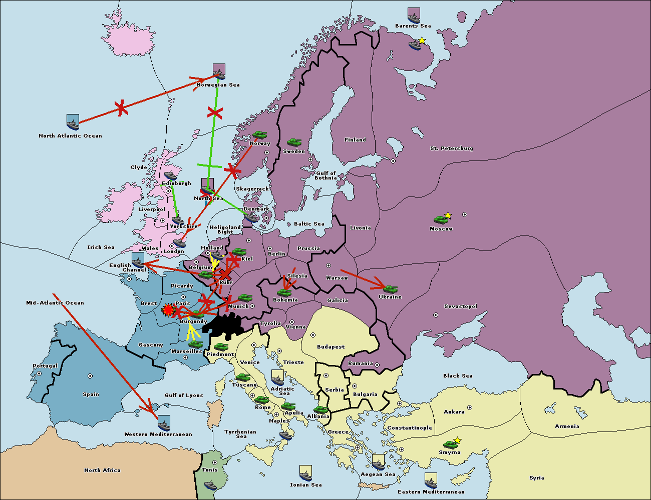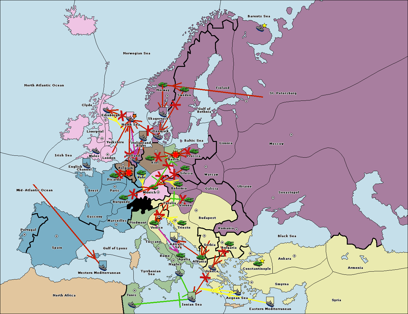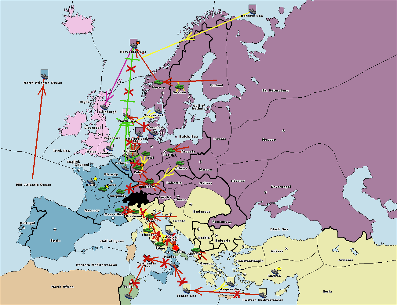 The fleet at St. Petersburg (North Coast) move to Barents Sea.