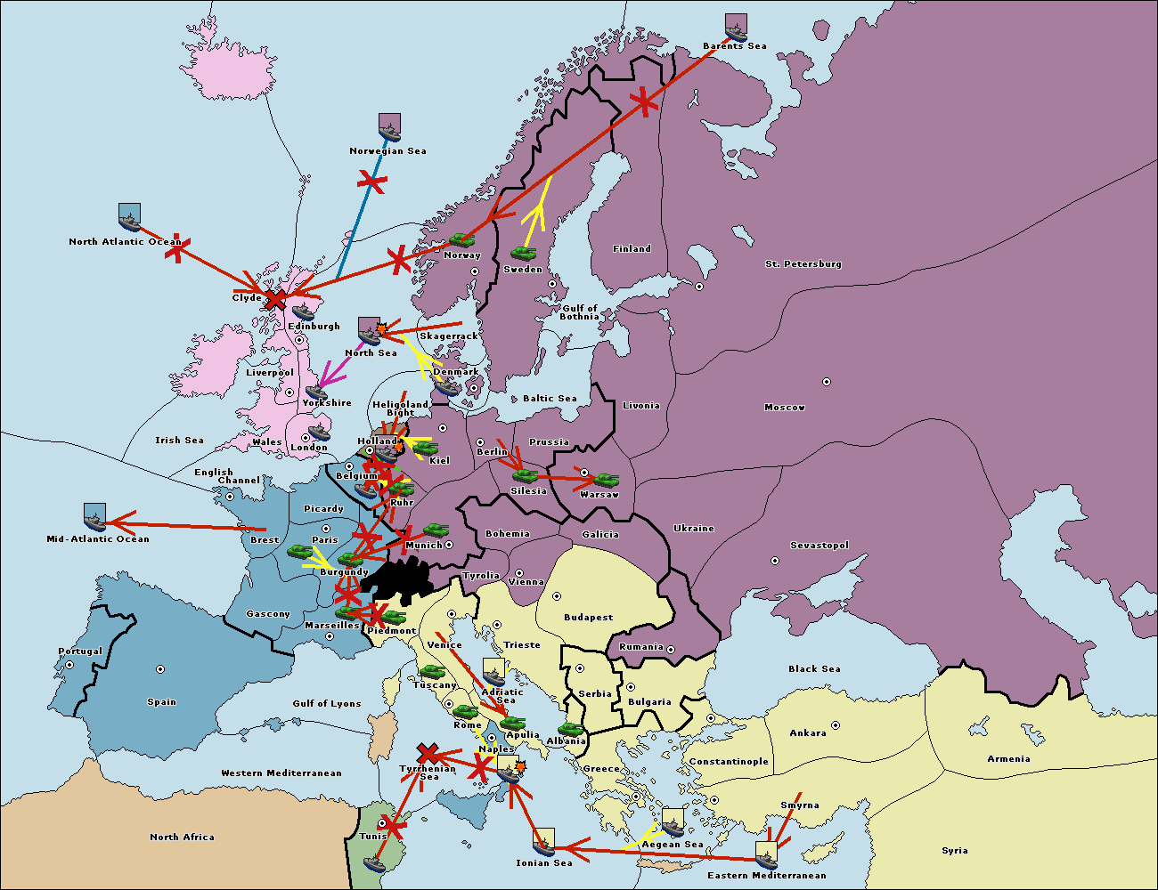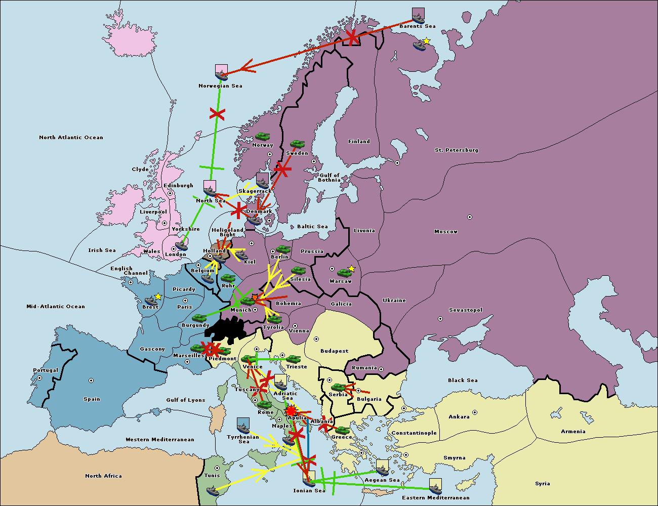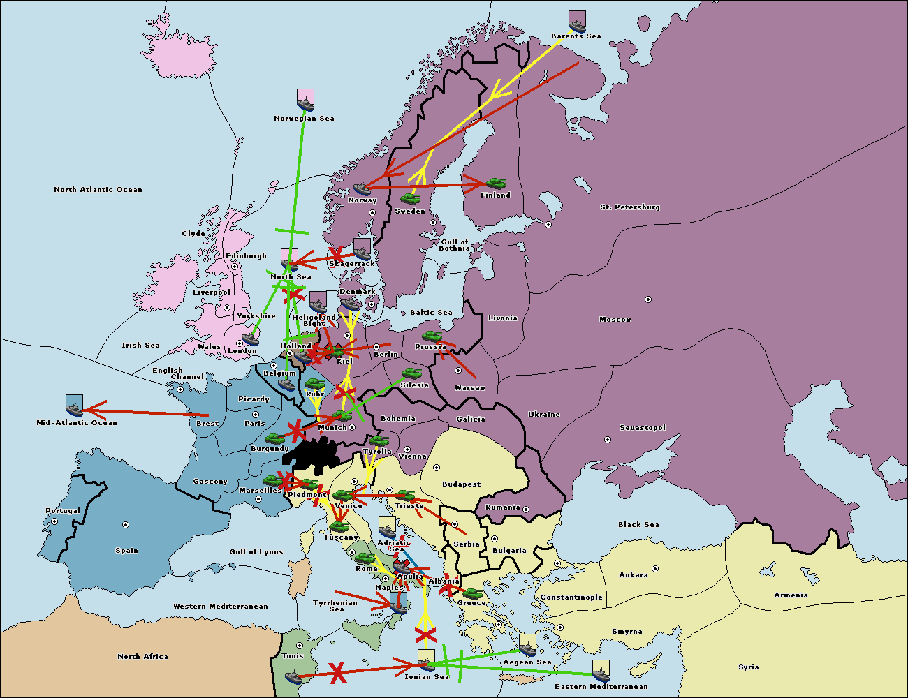 The fleet at Aegean Sea support hold to Ionian Sea.