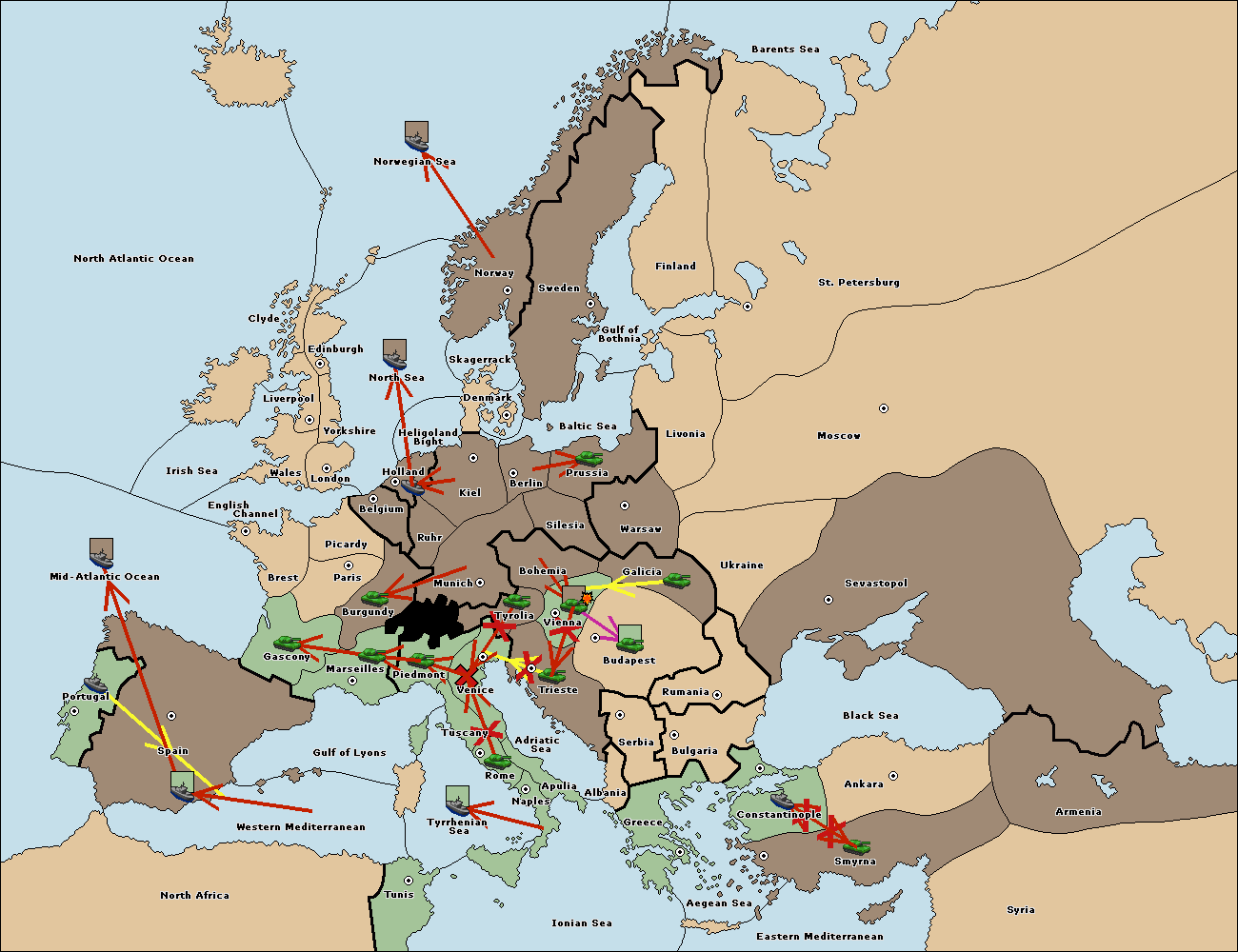 The fleet at Bulgaria (South Coast) move to Constantinople.