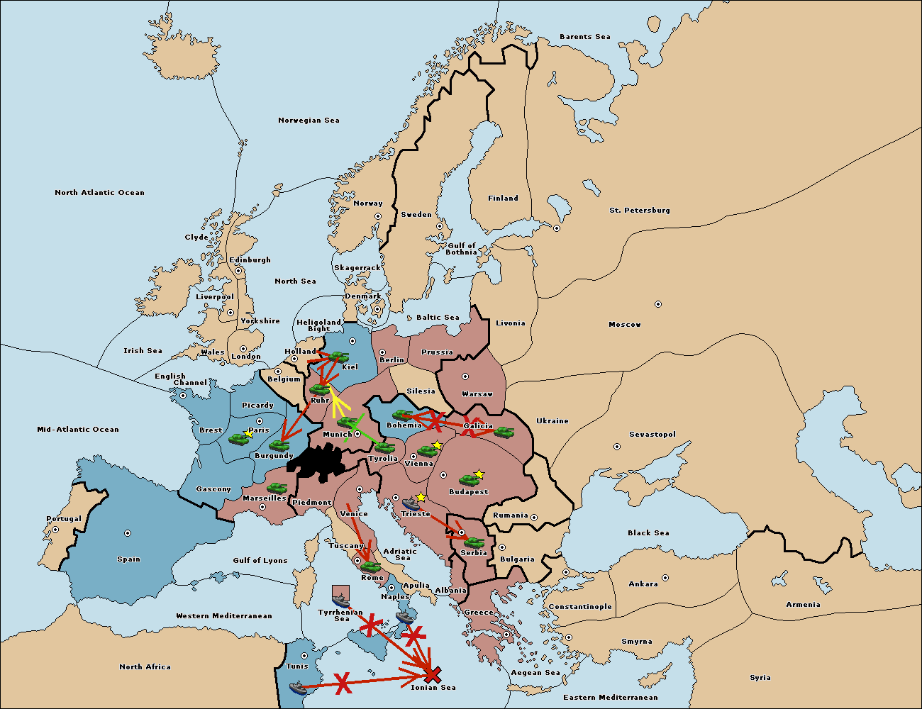 The fleet at Naples support move to Ionian Sea from Tunis.