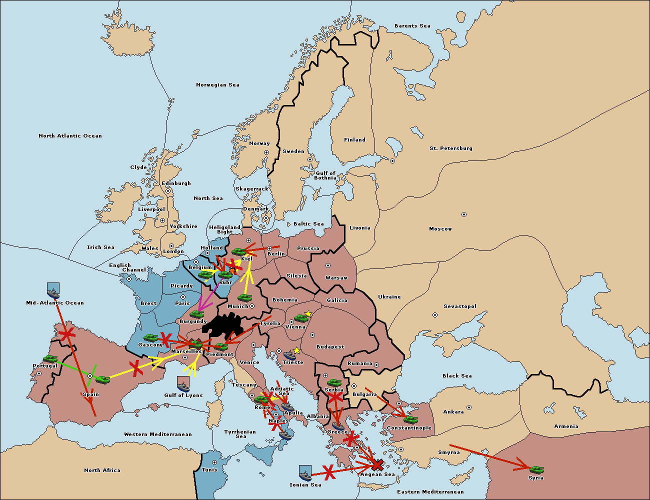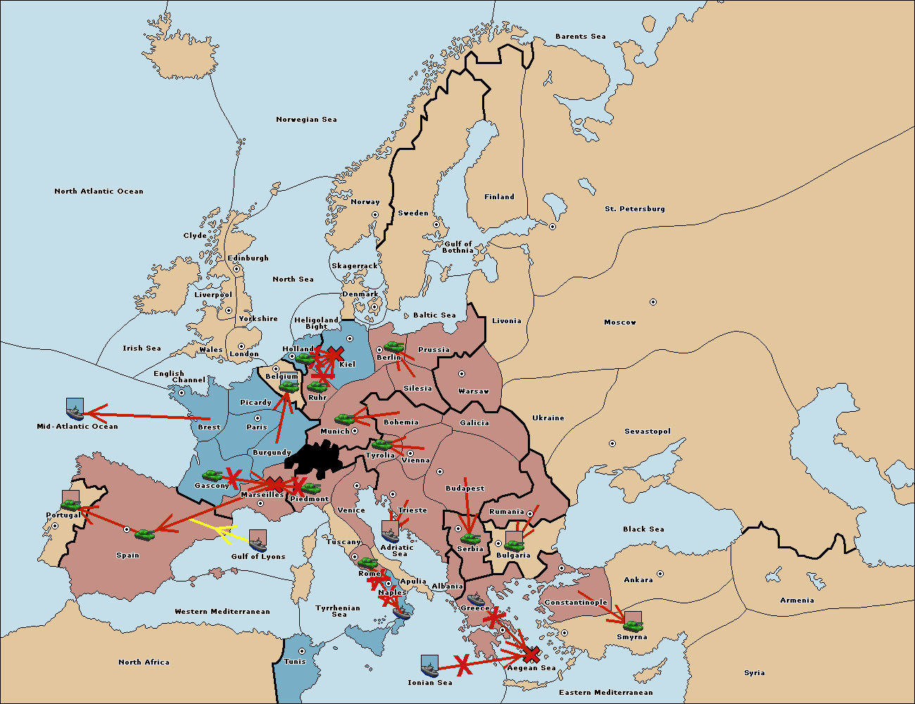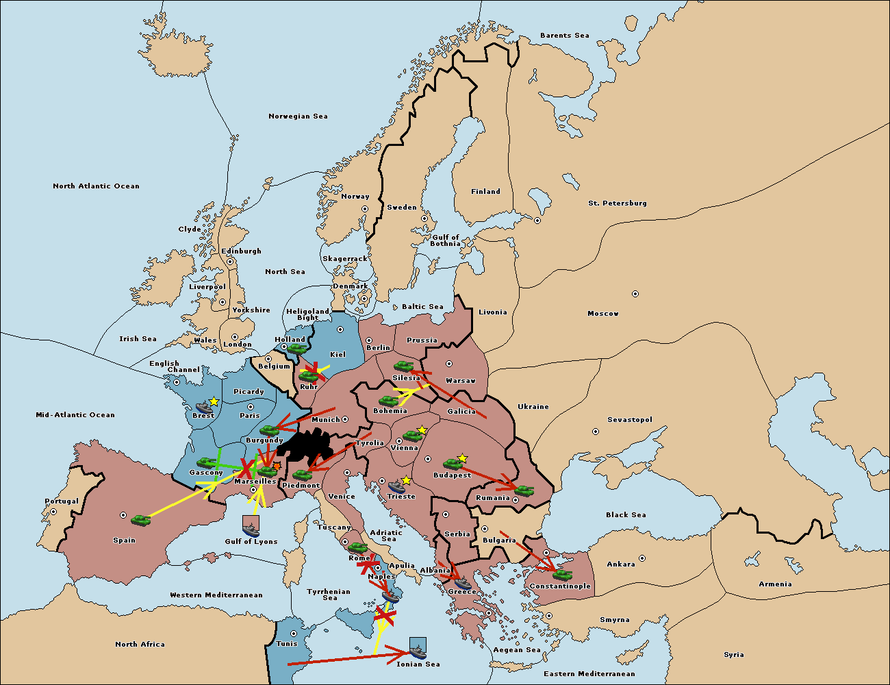 The fleet at Gulf of Lyons support move to Marseilles from Burgundy.
