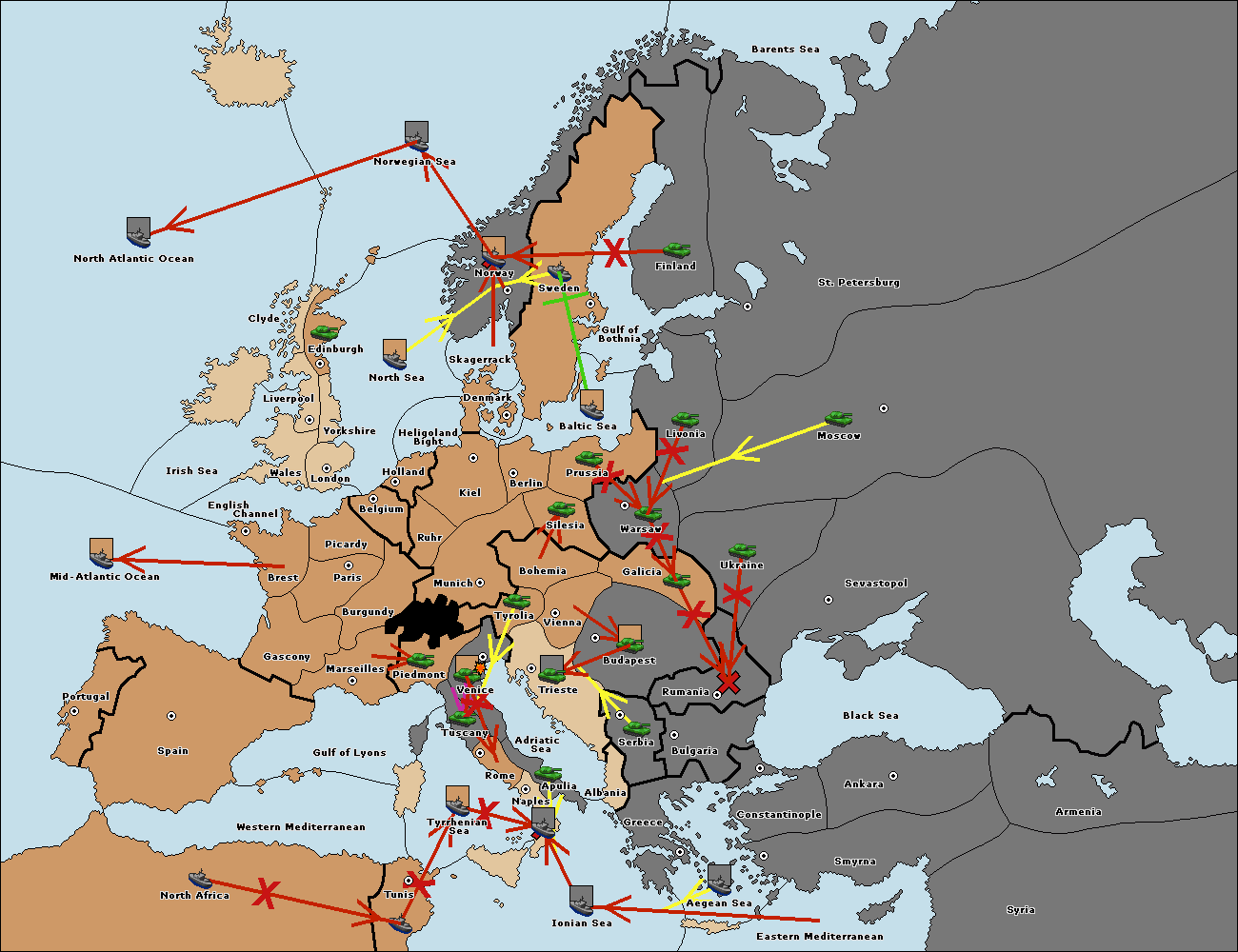 The fleet at Tyrrhenian Sea support move to Ionian Sea from Tunis.