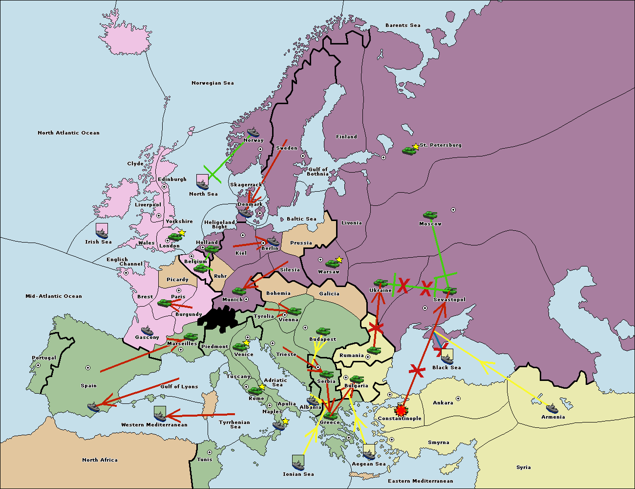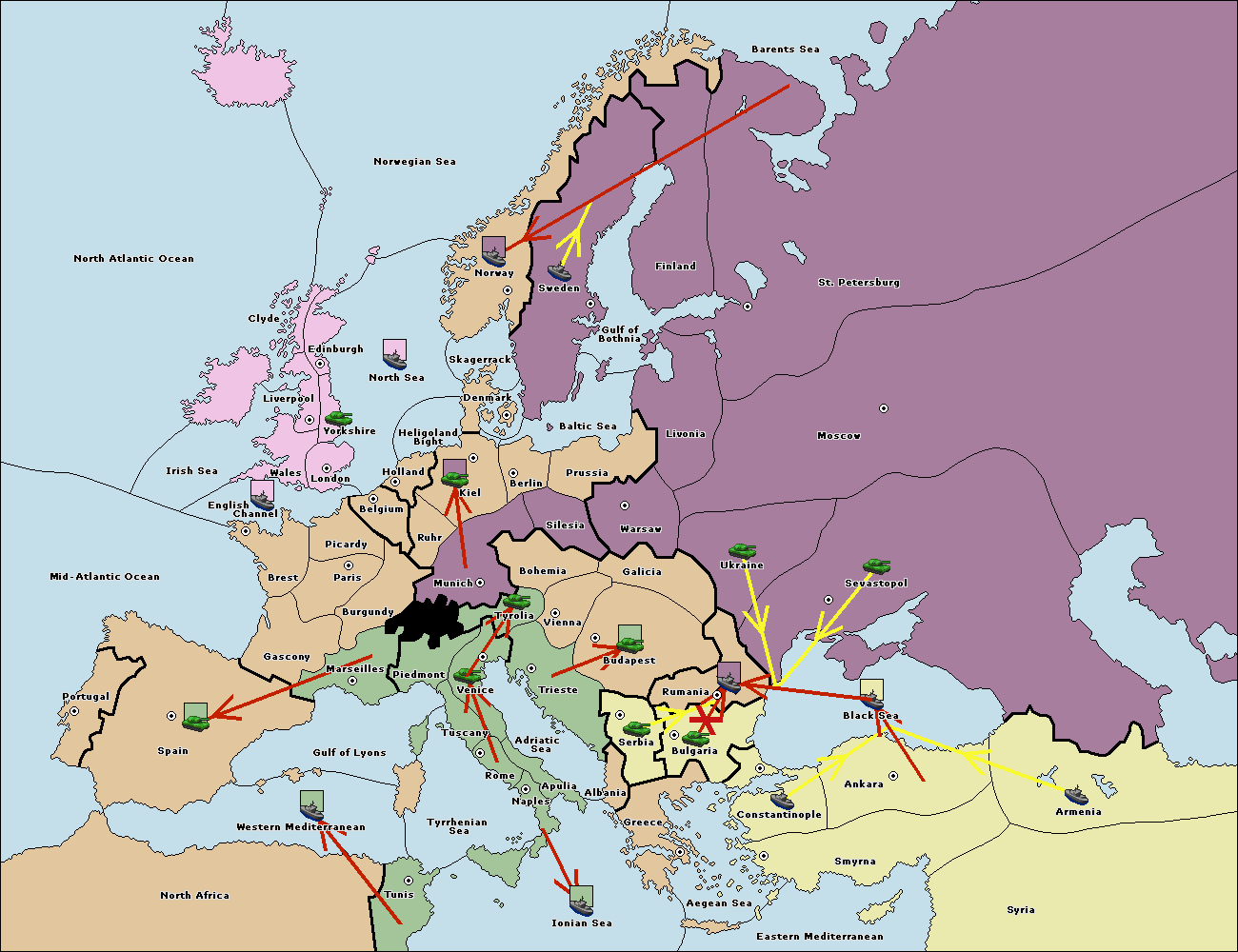 The fleet at Armenia support move to Sevastopol from Constantinople.