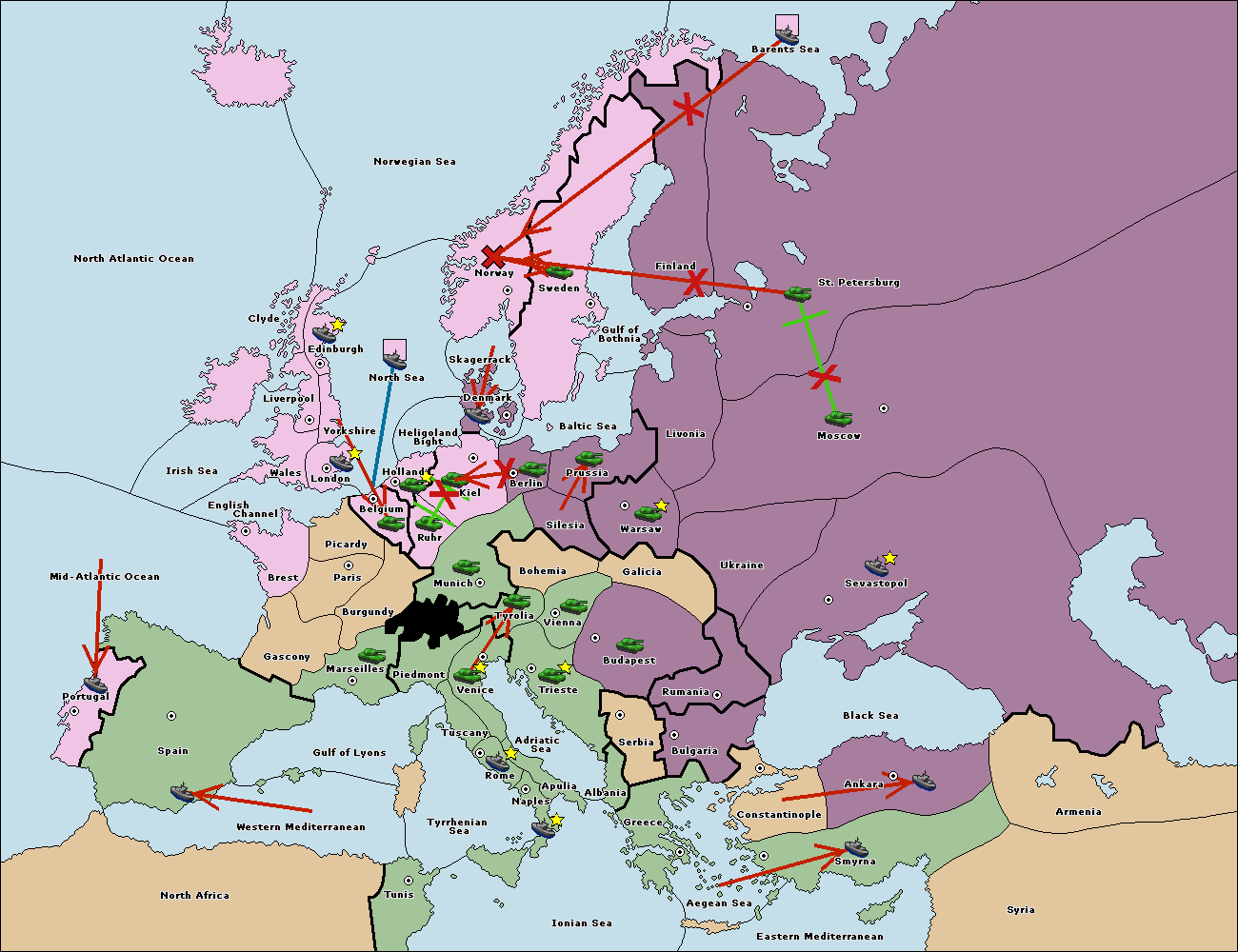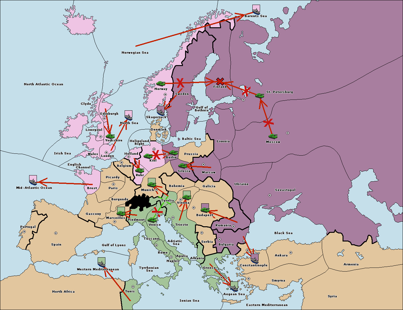 The fleet at Bulgaria (North Coast) move to Constantinople.