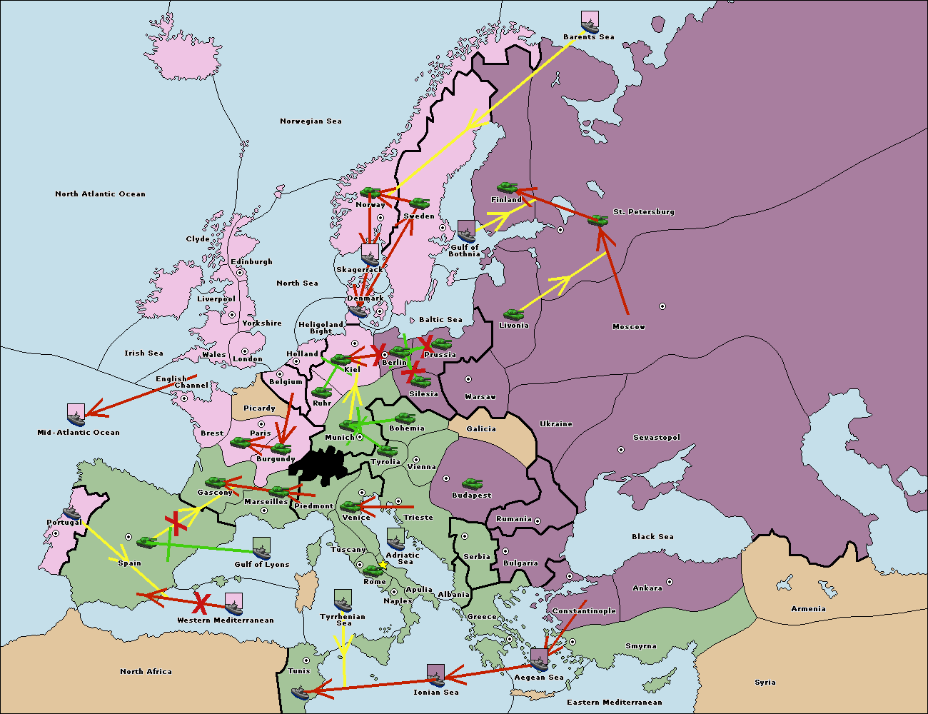 The fleet at Mid-Atlantic Ocean move to Western Mediterranean.