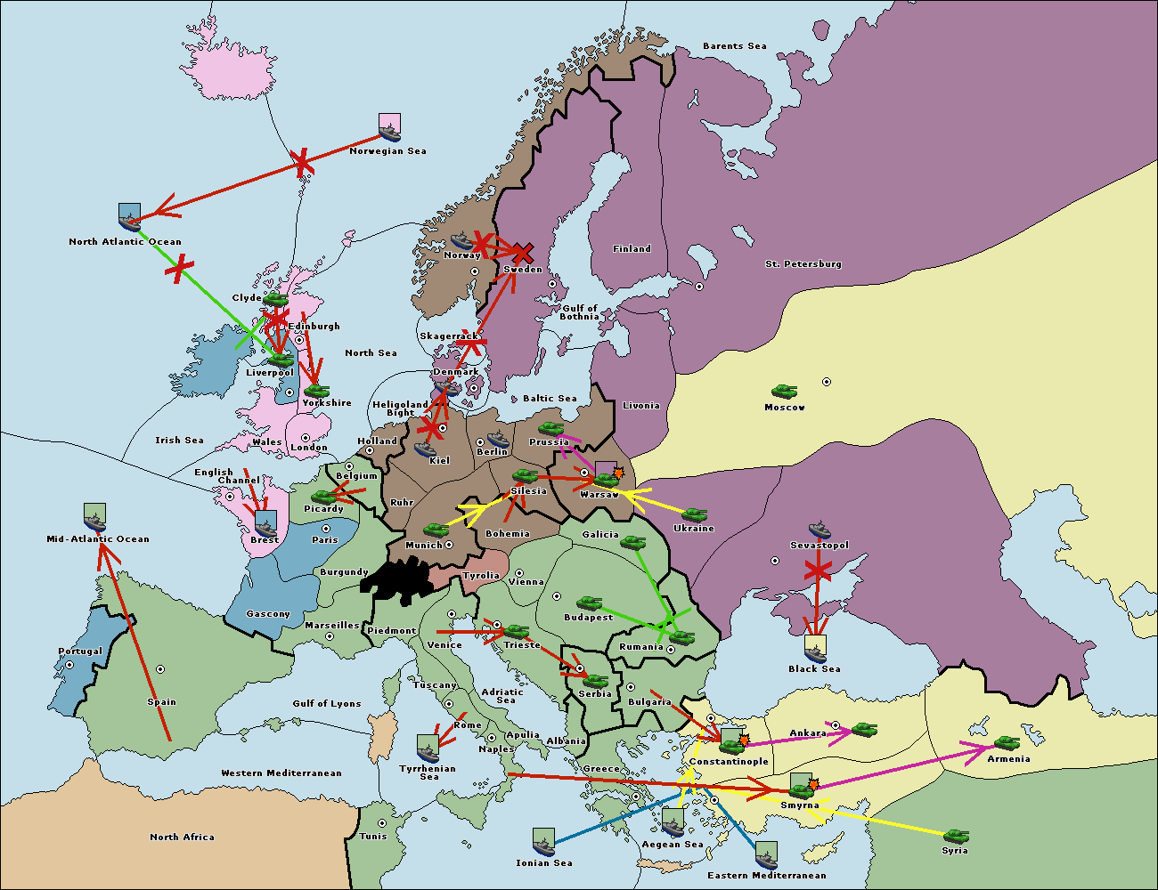 The fleet at Denmark support move to Kiel from Baltic Sea.