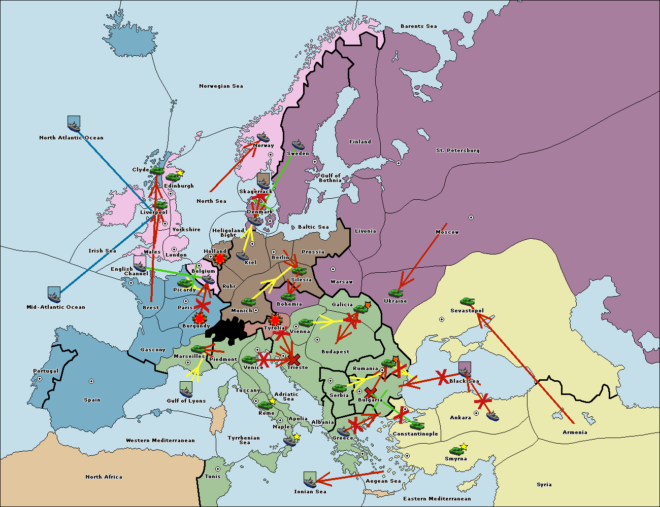 The fleet at Naples support move to Ionian Sea from Tunis.