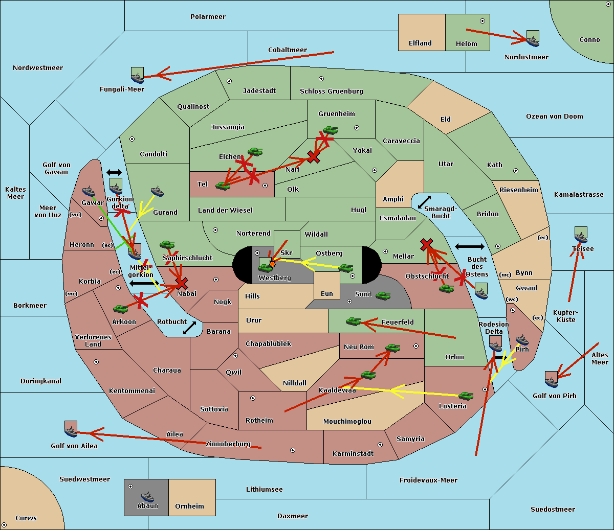 The fleet at Bucht des Ostens support move to Orlon from Obstschlucht.