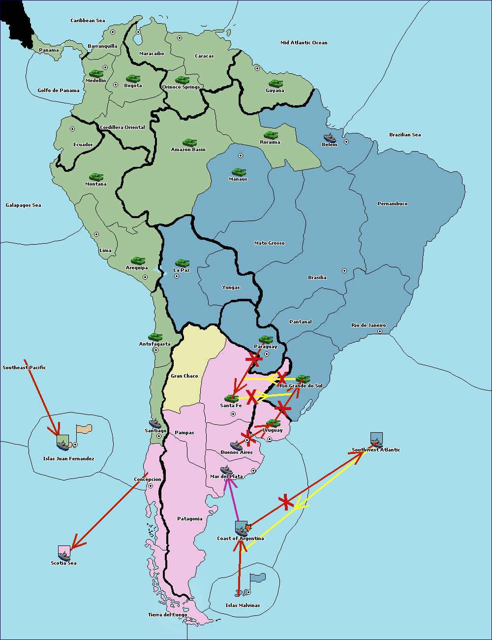 The fleet at Mid Atlantic Ocean move to Brazilian Sea.