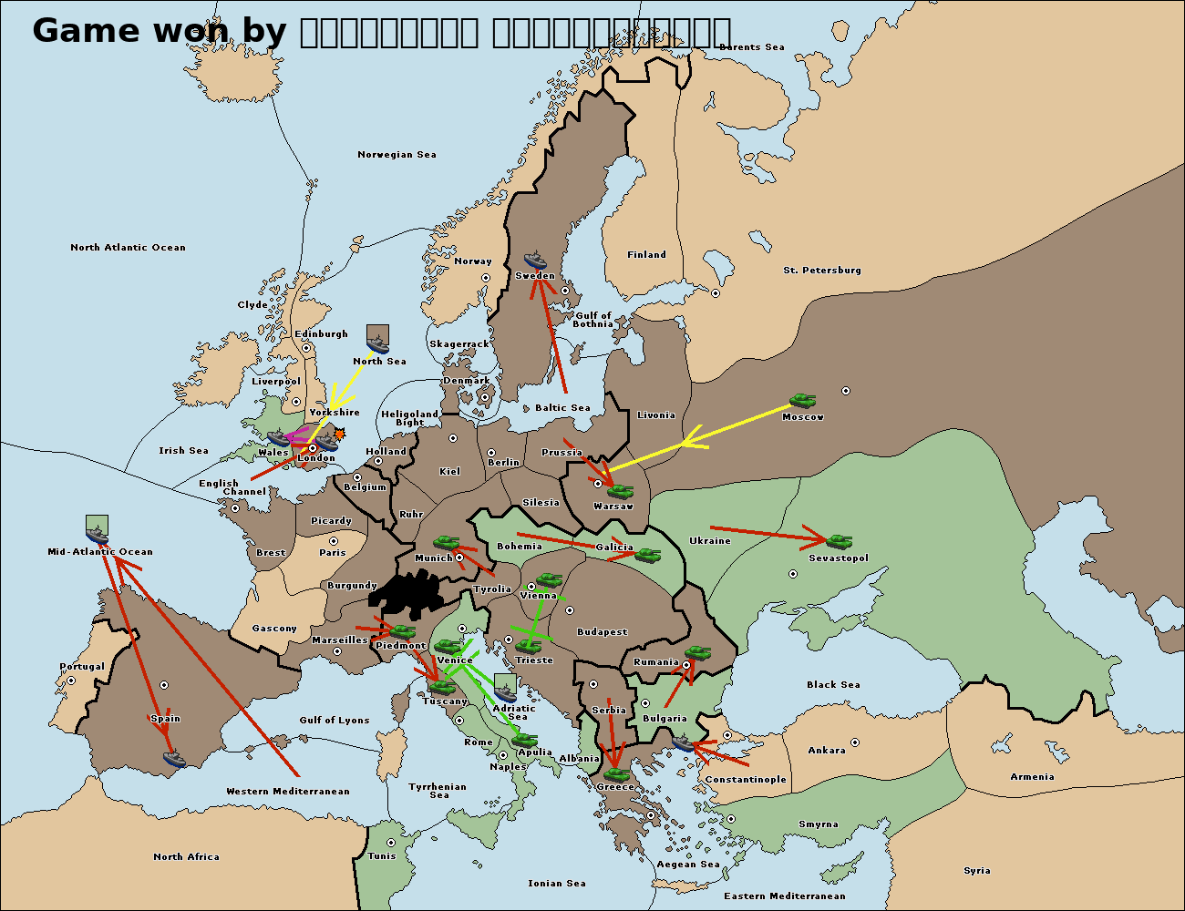 The fleet at Bulgaria (North Coast) move to Constantinople.