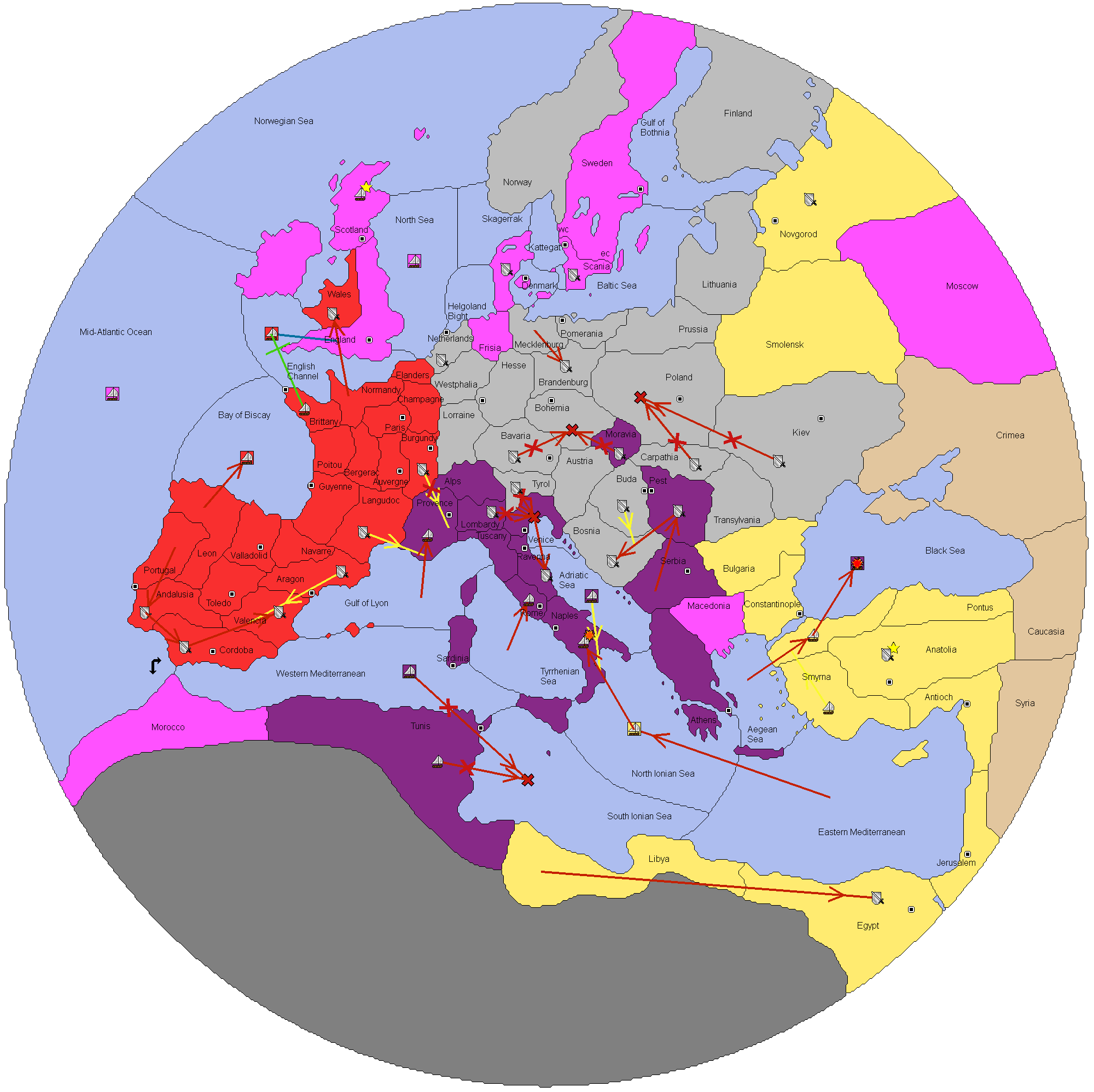 The fleet at Mid-Atlantic Ocean support move to Cordoba from Western Mediterranean.