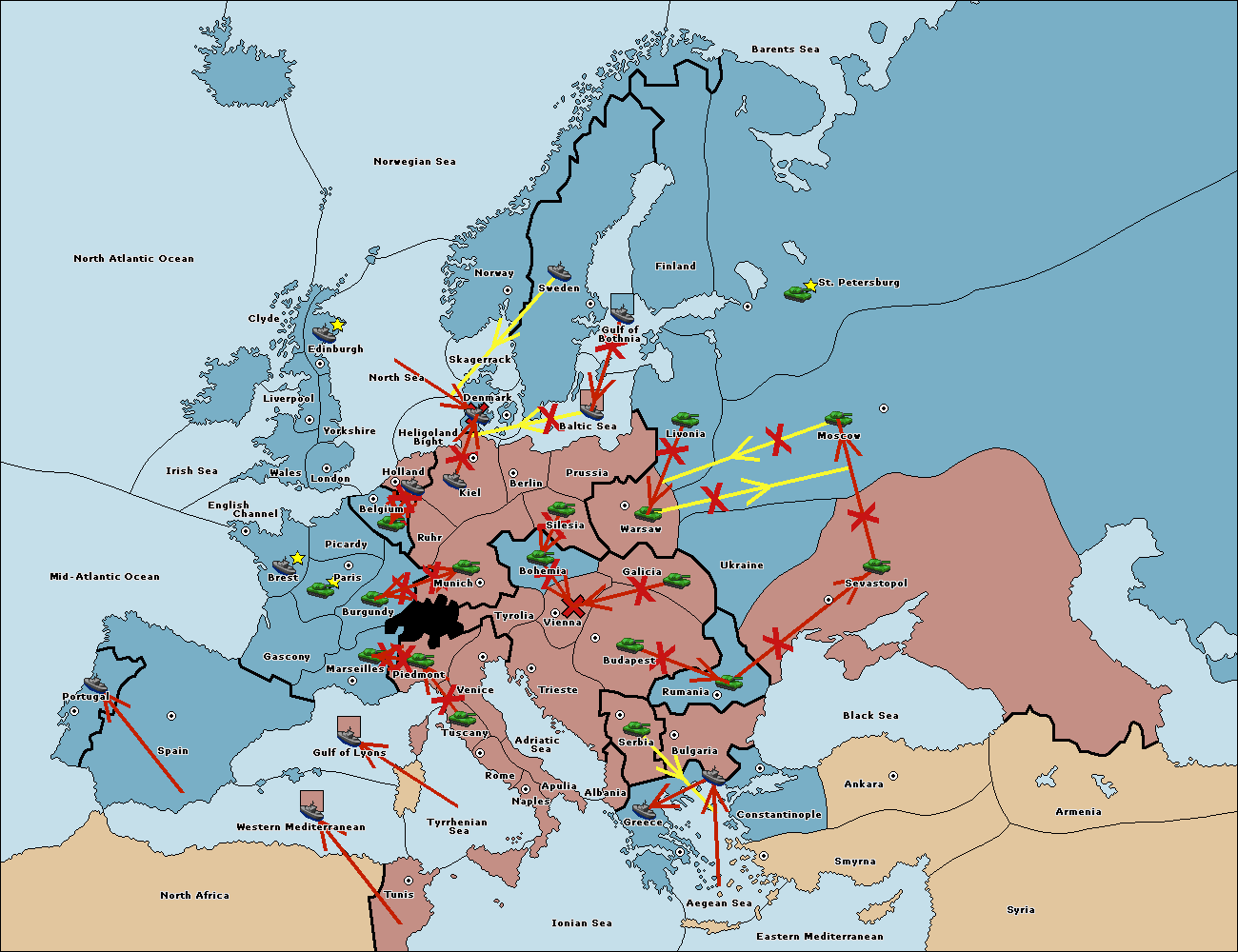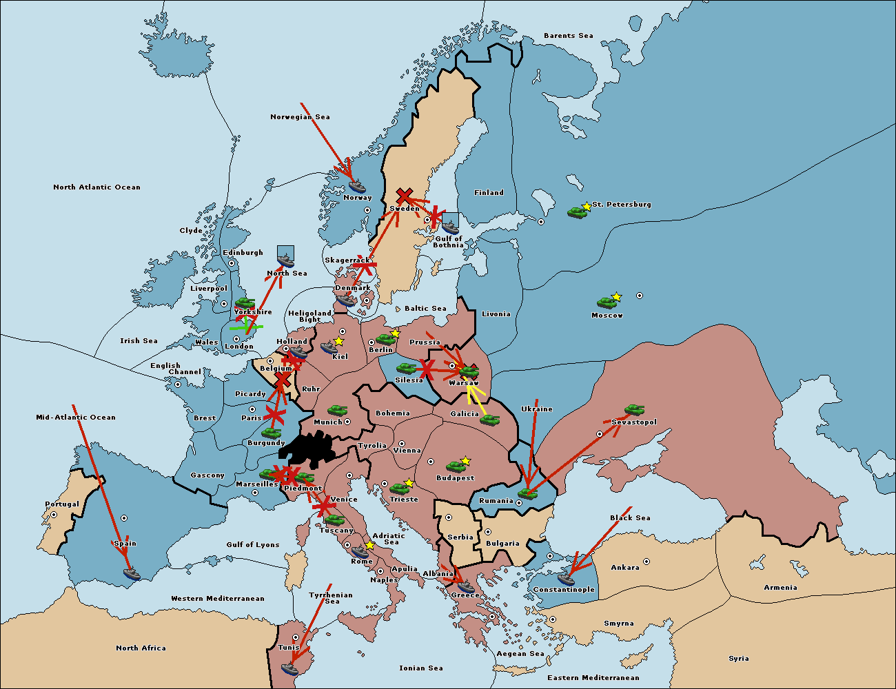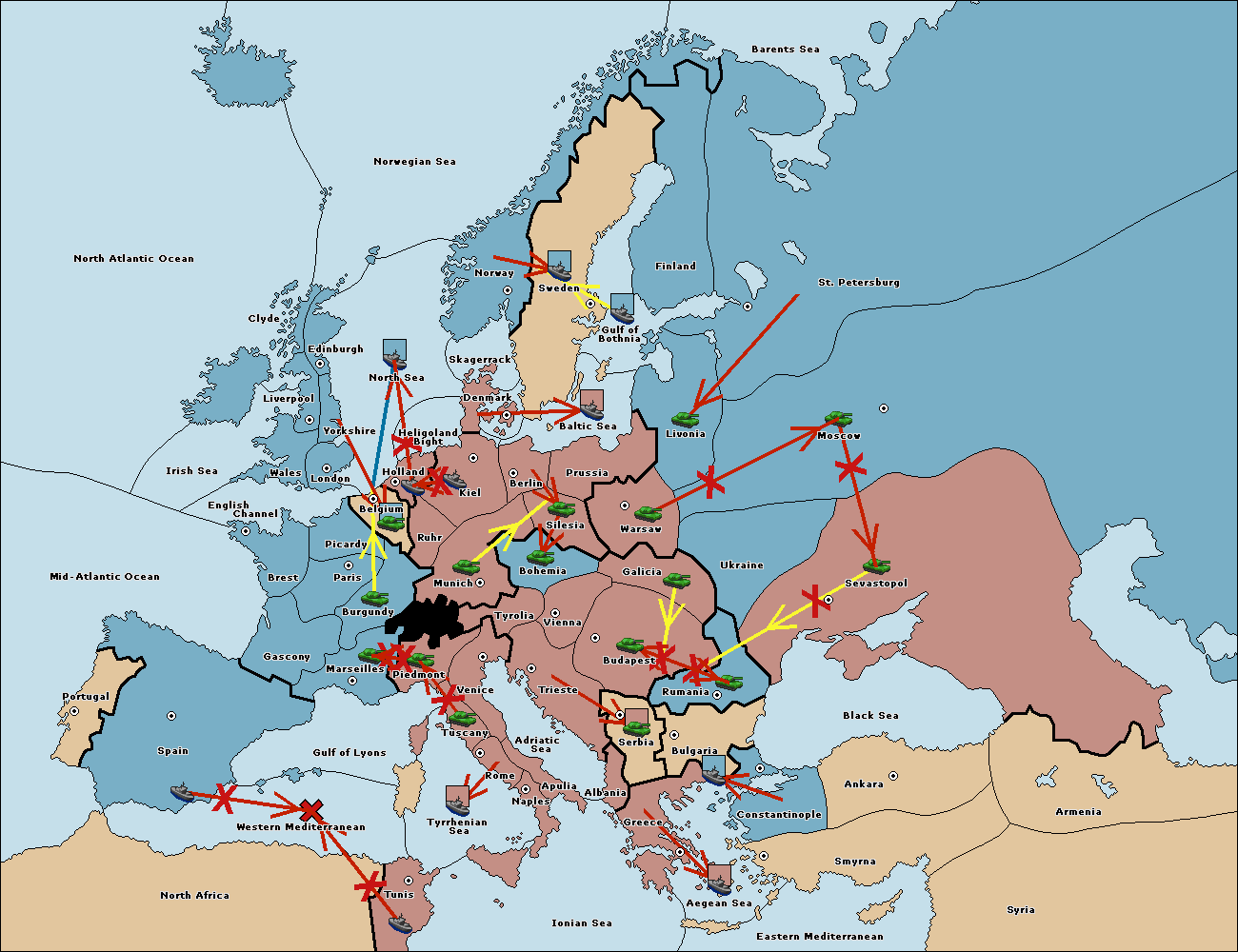 The fleet at Bulgaria (South Coast) move to Constantinople.